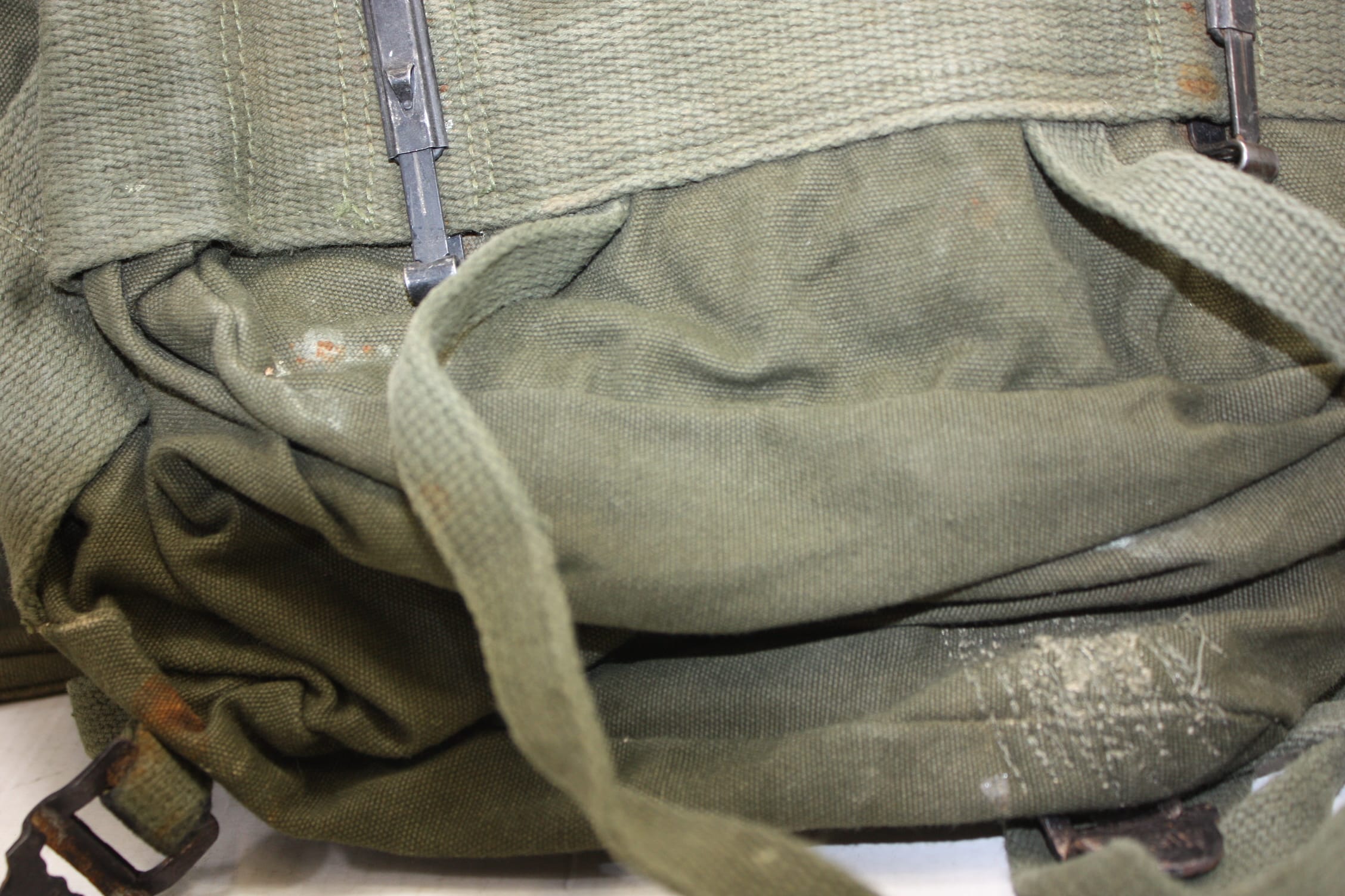 Used, fair condition canvas butt pack-Vietnam issue. Might have holes and or repairs. Color is fair with some fading and abrasions. Perfect for re-enactors. Some buckles and or straps may be damaged with oxidation/rust/bent/broken.