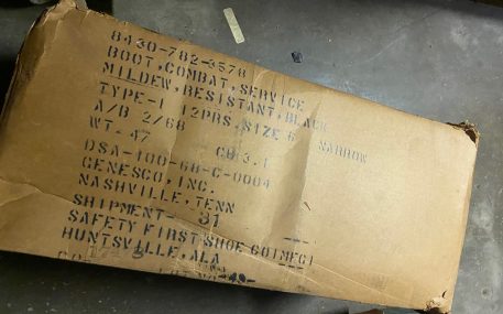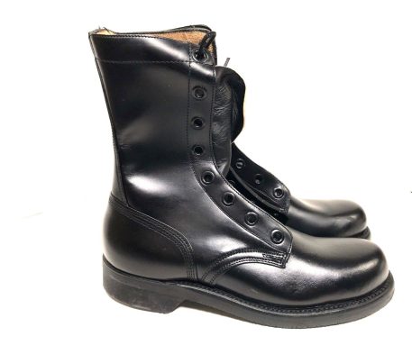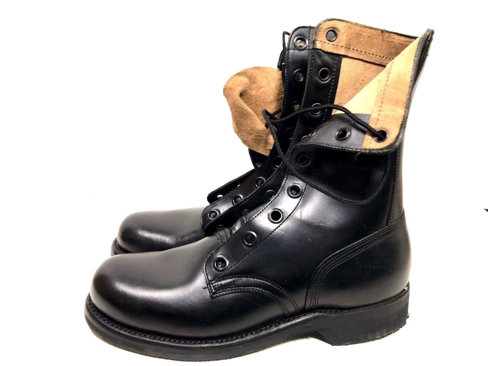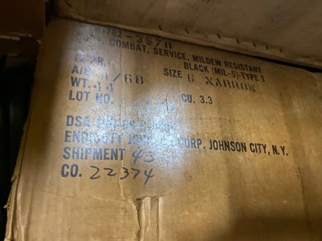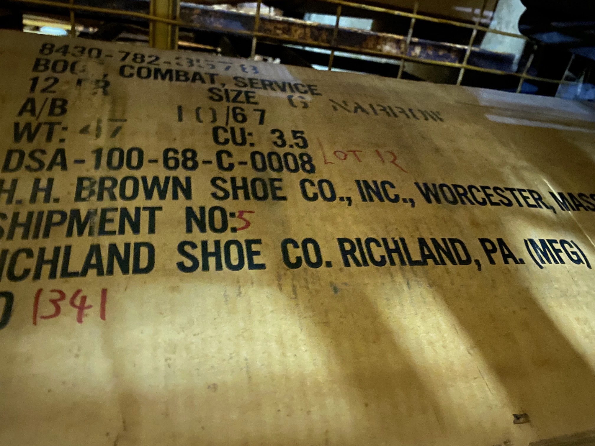 New, old stock. US MADE. Flat heavy safety sole (almost like jump boots) as opposed to the later issue traction gripping Chevron sole. All size 6N only. 1967 dated. Case of 12 pair of boots.