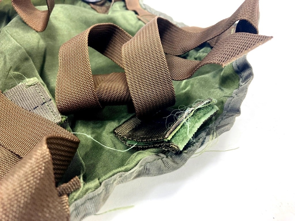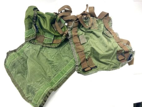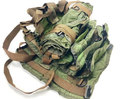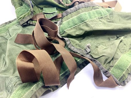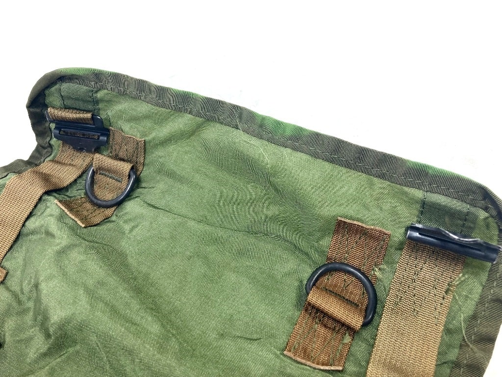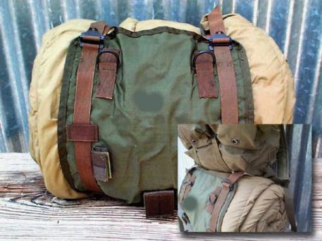 Original Vietnam dated sleeping bag carrier for the soldier’s combat harness or rucksack. Made to fit on many types of combat harness set- ups. Attach with hook and loop fasteners or loop through your Alice pack with the wrap-around straps. Used and in good condition. No date or US marking-they have worn off. Serviceable