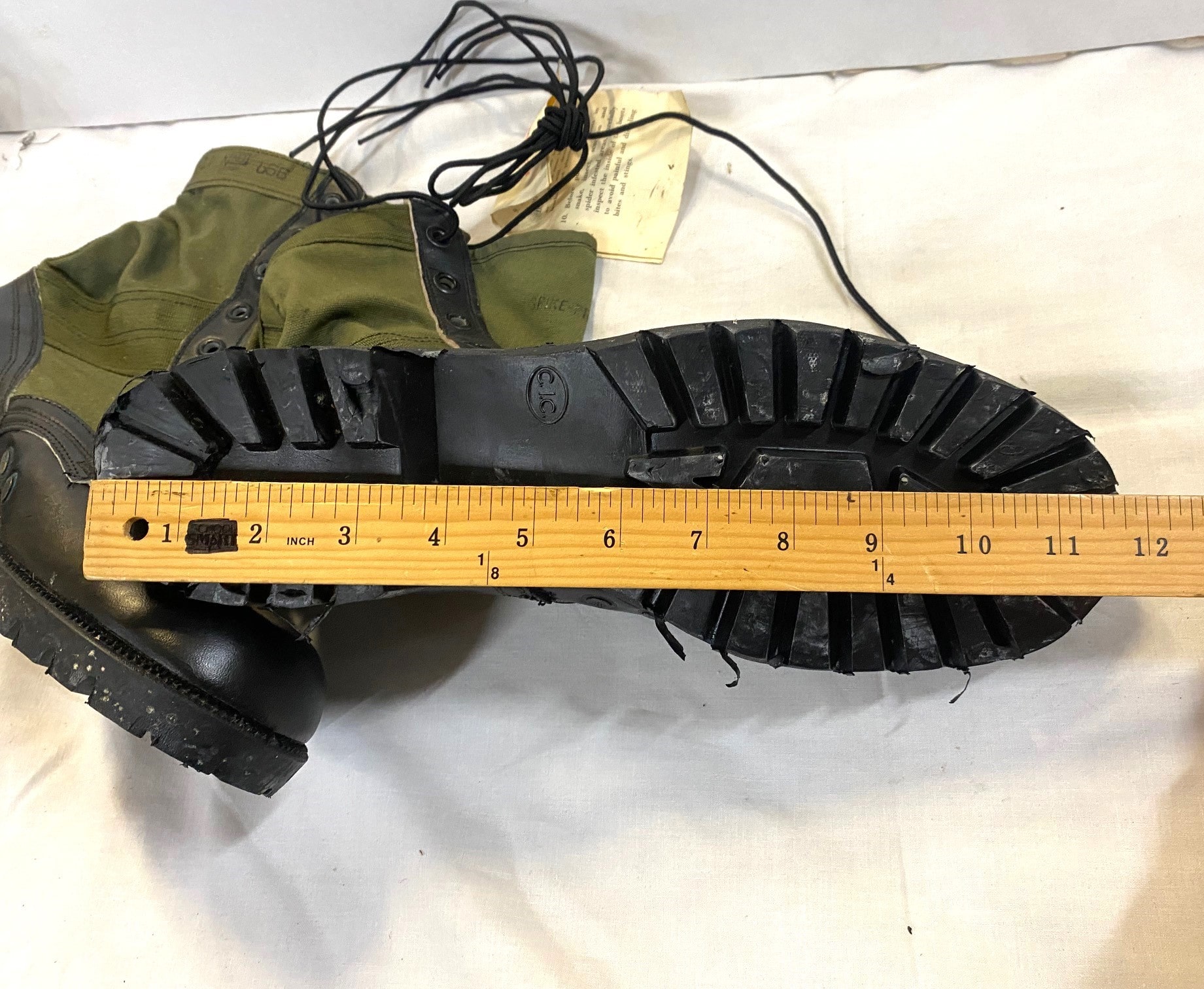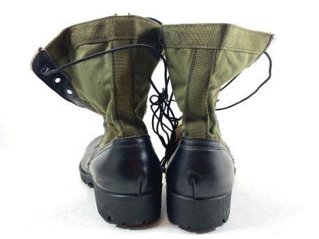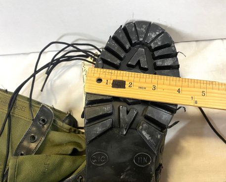 Original Issue Vietnam G.I. Jungle boots. These are the real deal. Developed and battle tested in Vietnam. The military issued the green canvas jungle boot through the late 1980’s. The military no longer contracts this canvas boot that all our troops fell in love with. We have for over 50 years managed to accumulate a good stock of this classic boot. Do not be confused – these are NOT imported copies. The original early-issue “vibram” sole”. *From age, these will show some residue on the soles from the protective agent that were on the boots to preserve them.