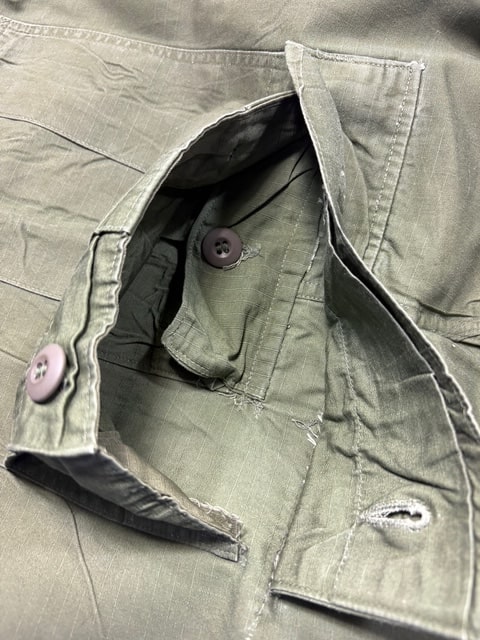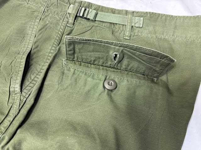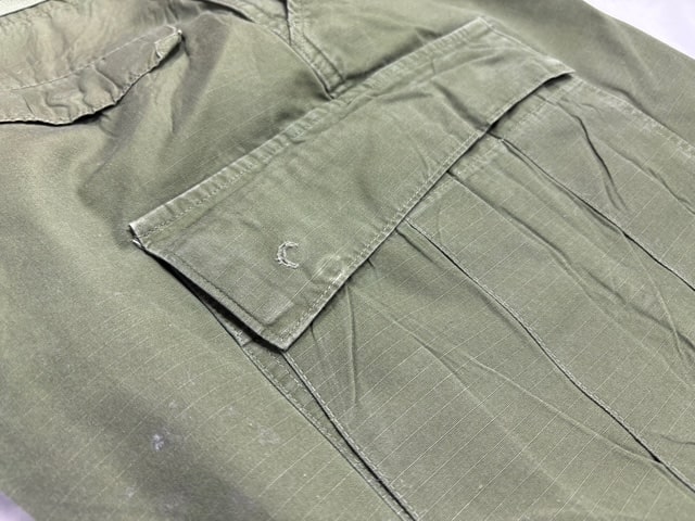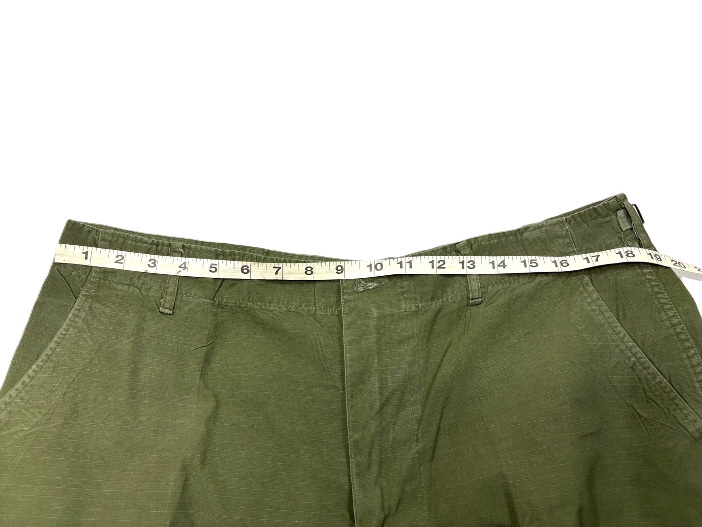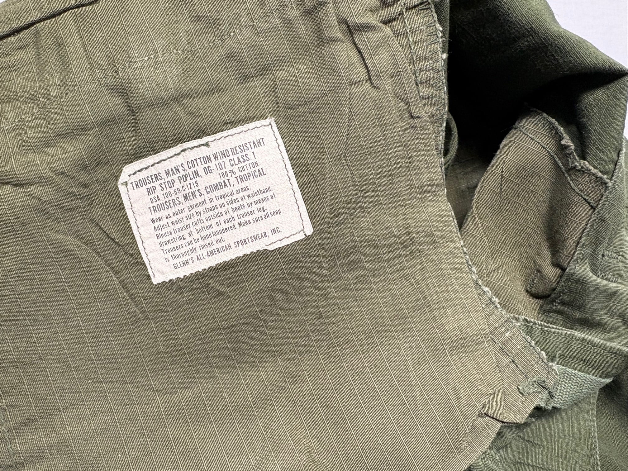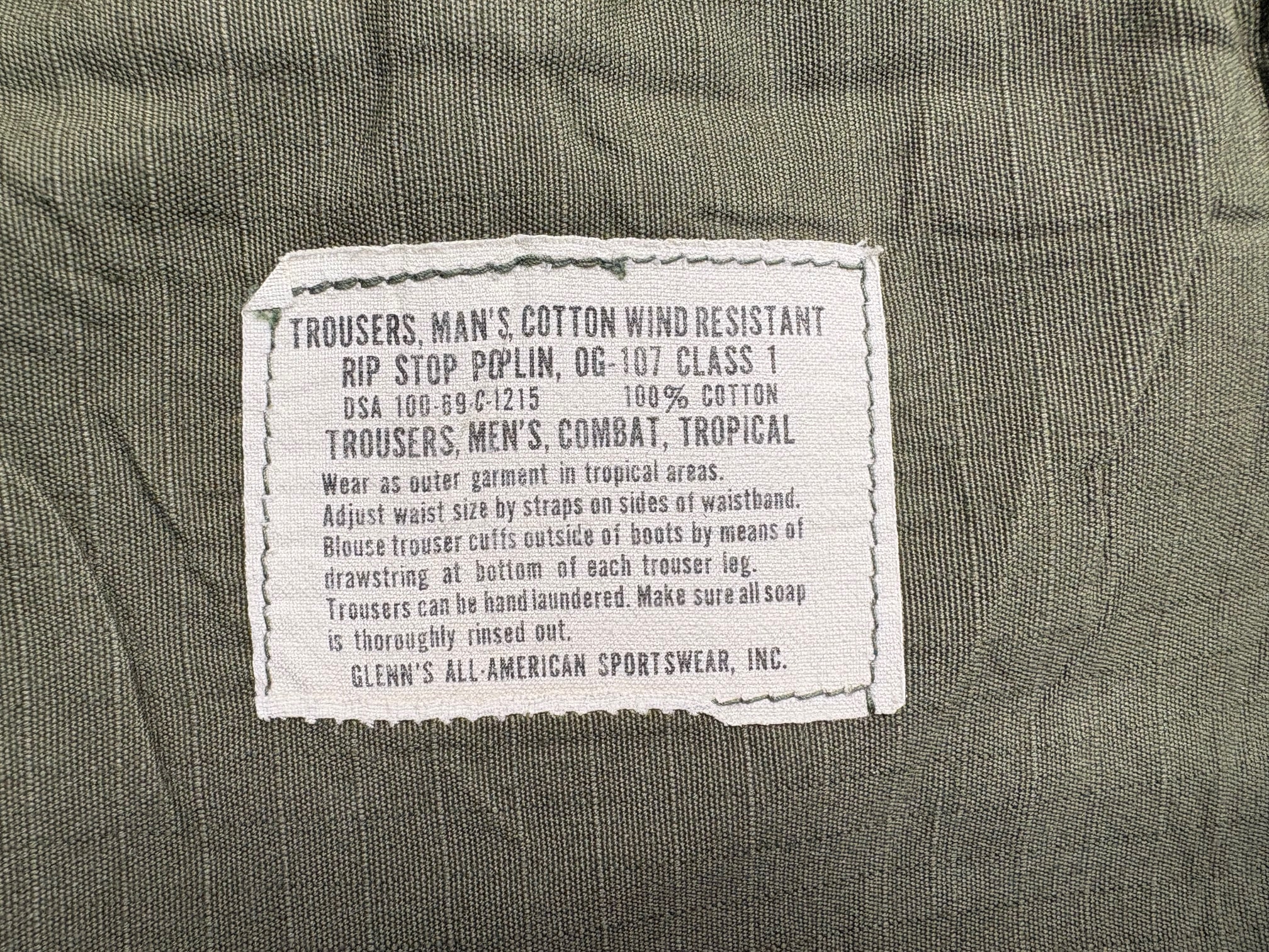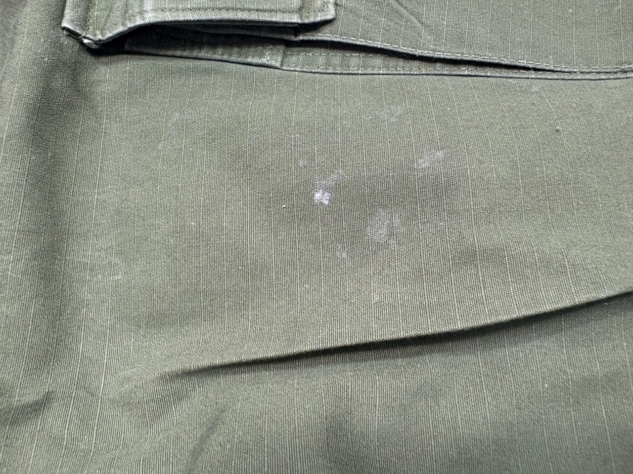 Zipper fly genuine military issue jungle fatigue pants from Vietnam War. Used condition. 1969 DATED. LARGE REGULAR* One tear on the pocket and two stains on the back legs. Sort of wax or glue staining the pants.