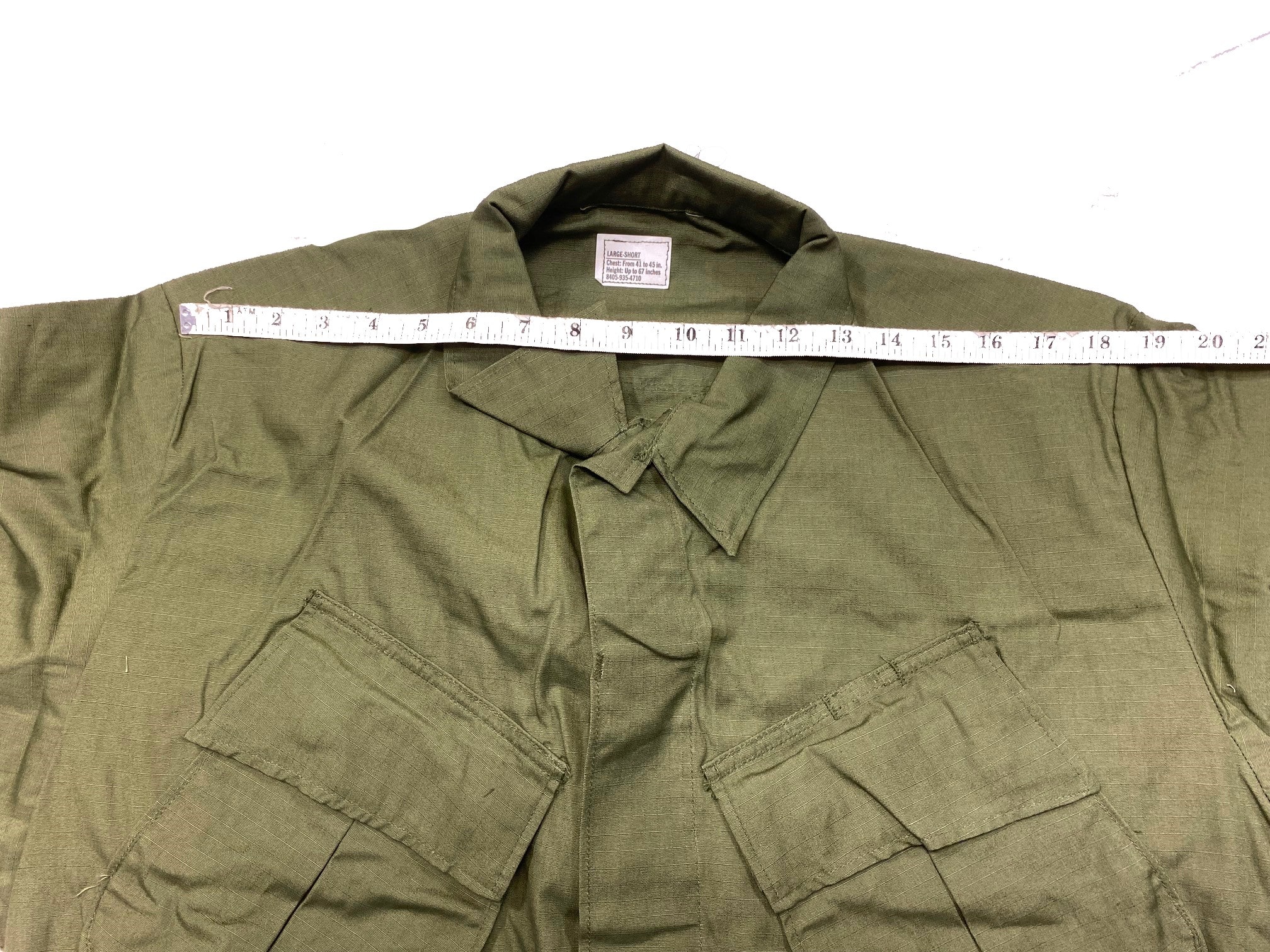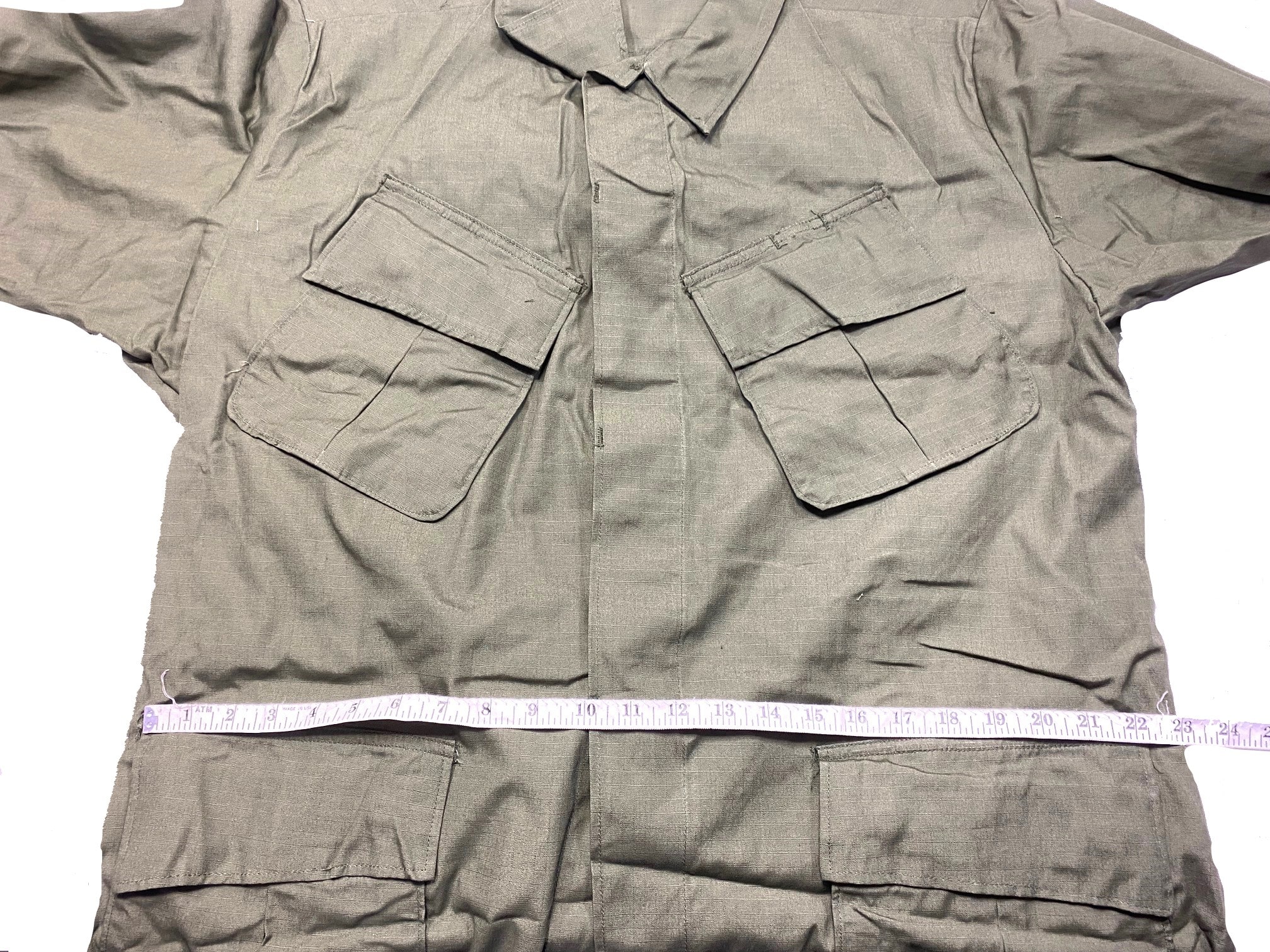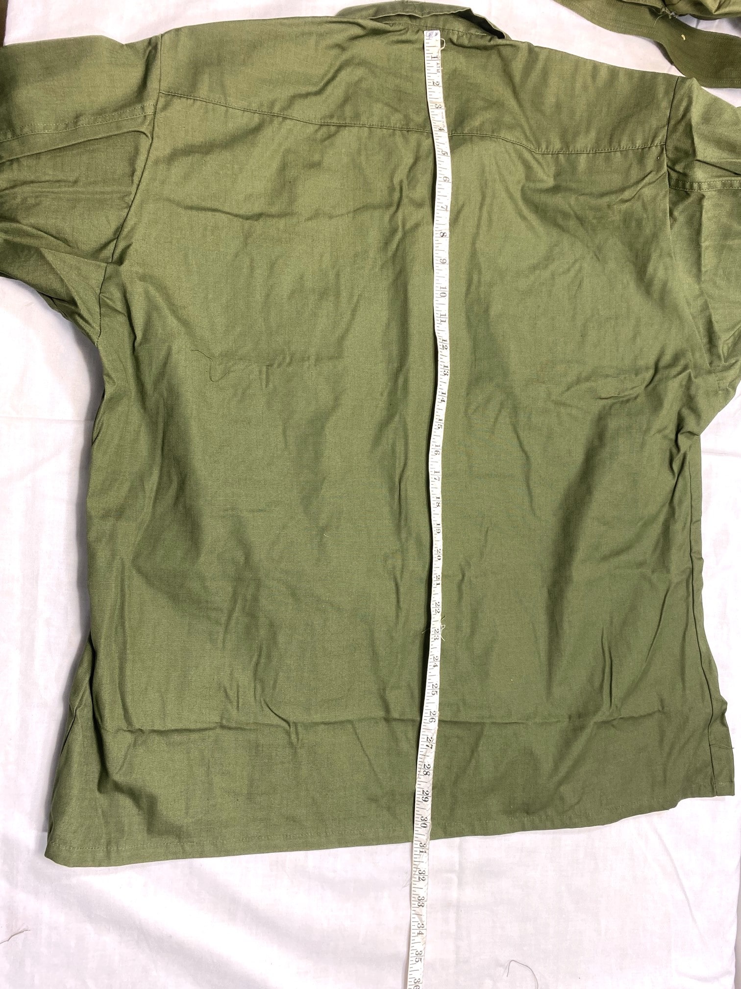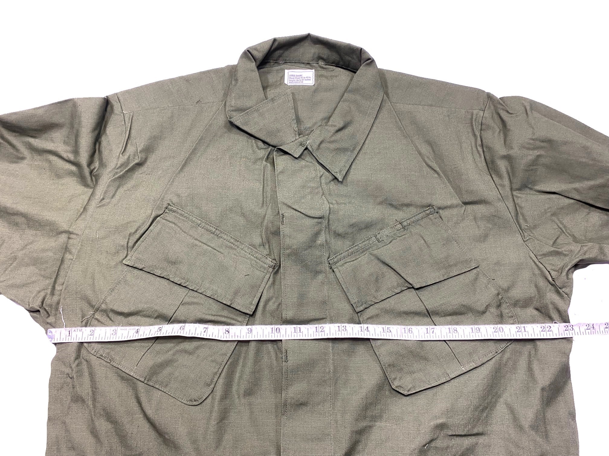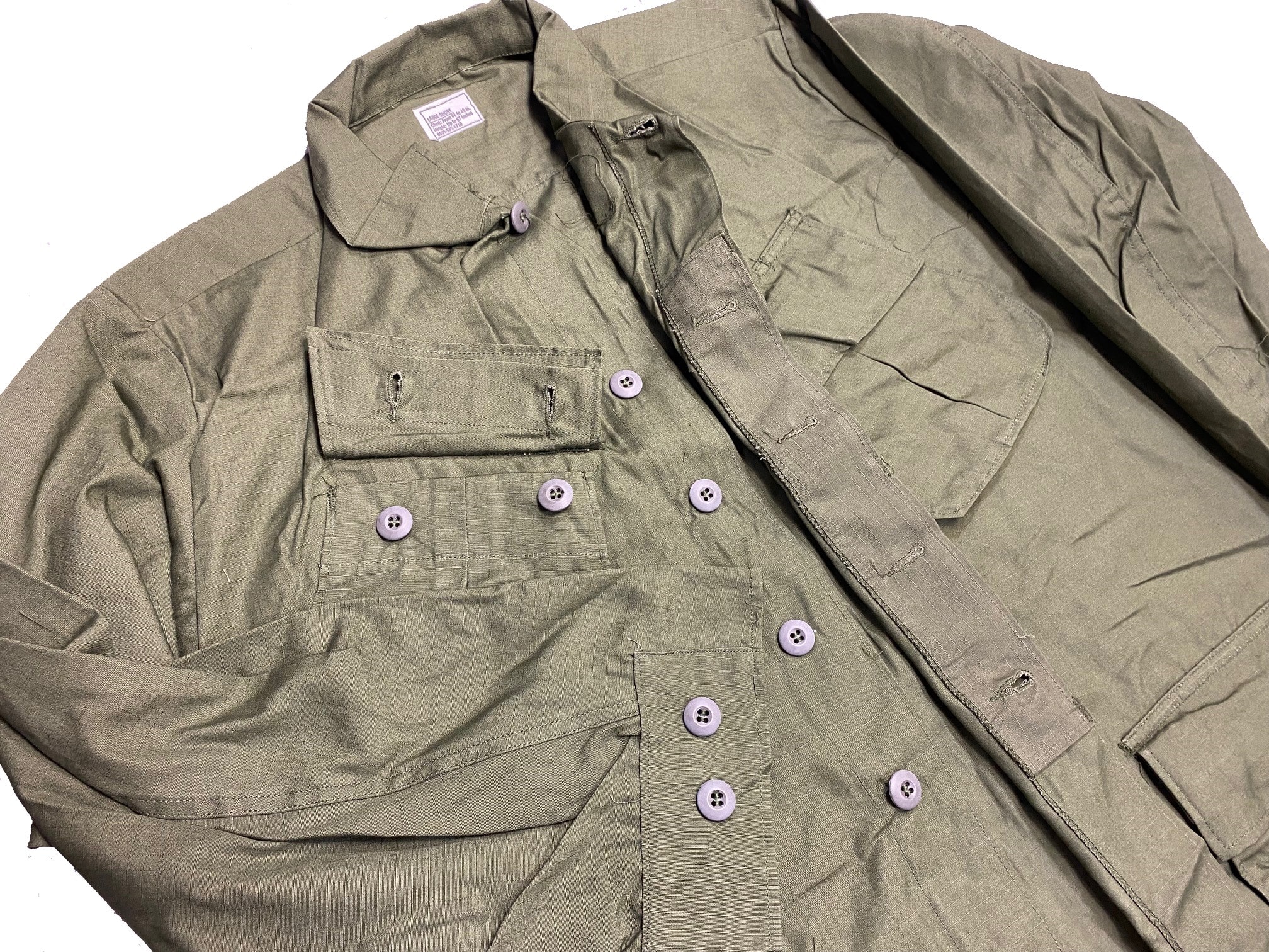 This is the 3rd pattern ripstop material. Olive drab green 4-pocket shirt. These military combat jackets are original Vietnam issue. Most are 60’s dated. Top two pockets on shirt are slanted inward for easy access. New and unissued.