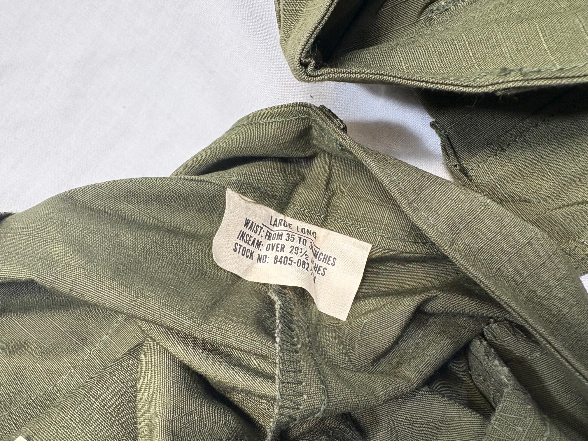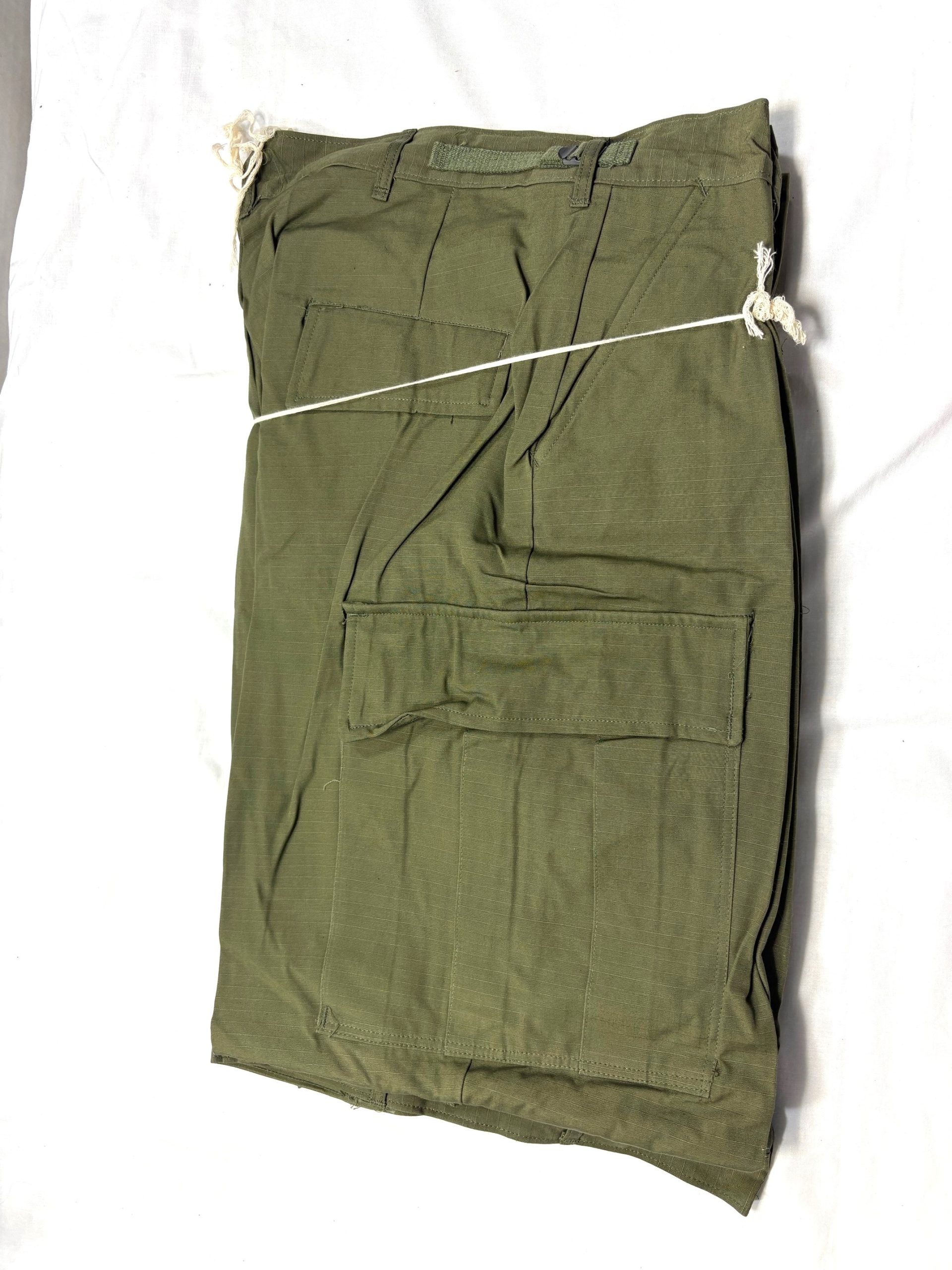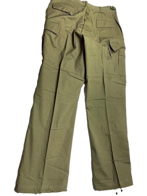 Genuine military issue jungle fatigue pants from Vietnam war. 2nd pattern ripstop material (button fly). Olive drab green 6-pocket trousers. NOS unissued. Limited stock quantity! only 2 available! Buy while you can!
