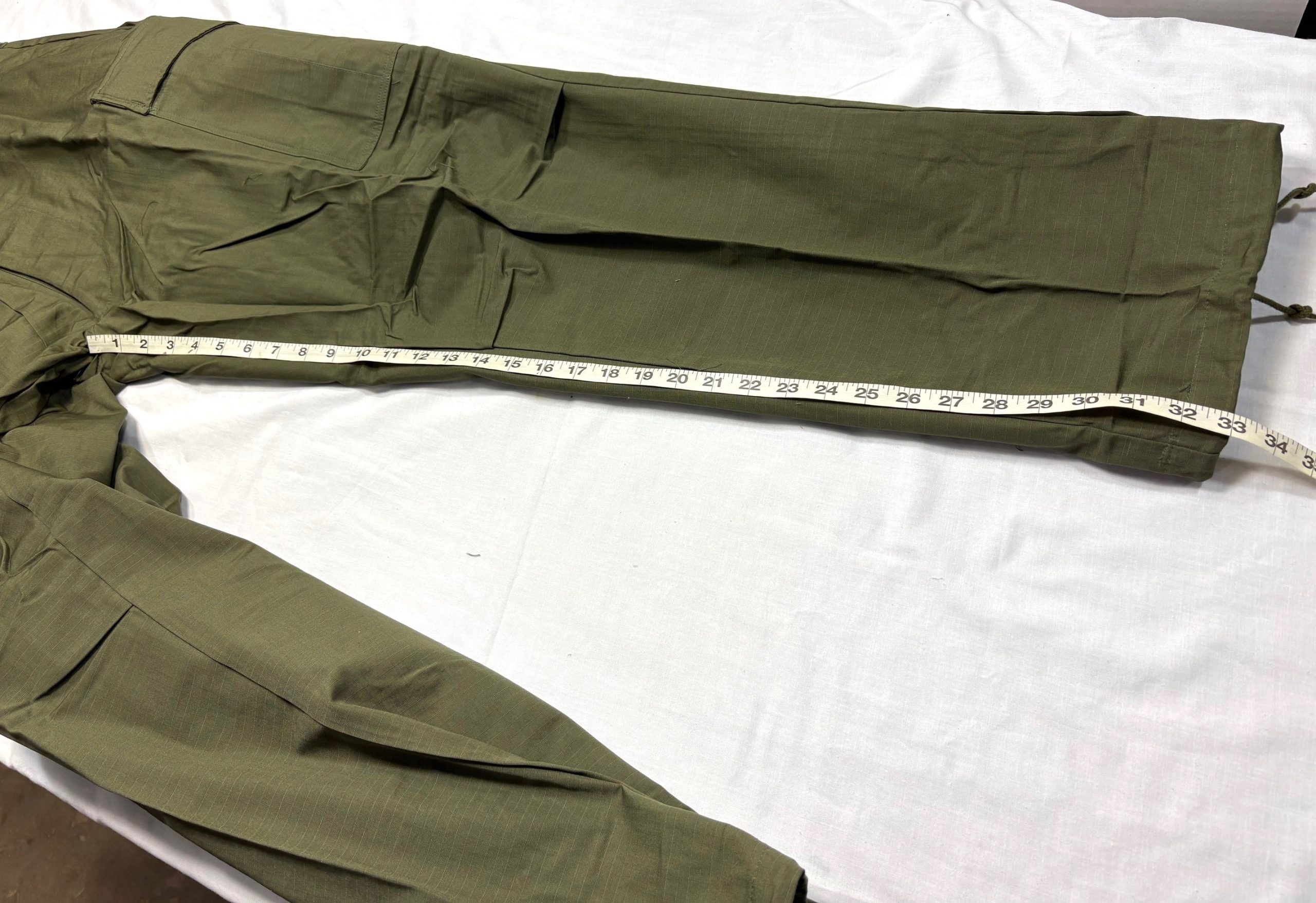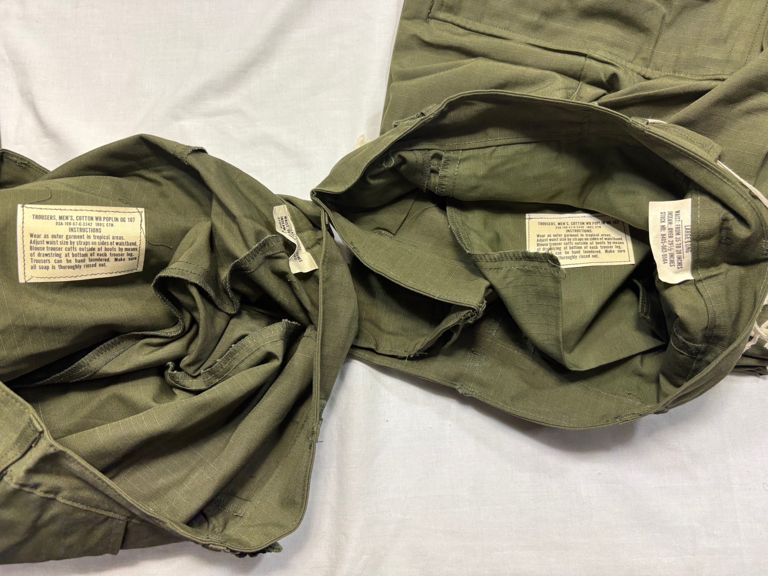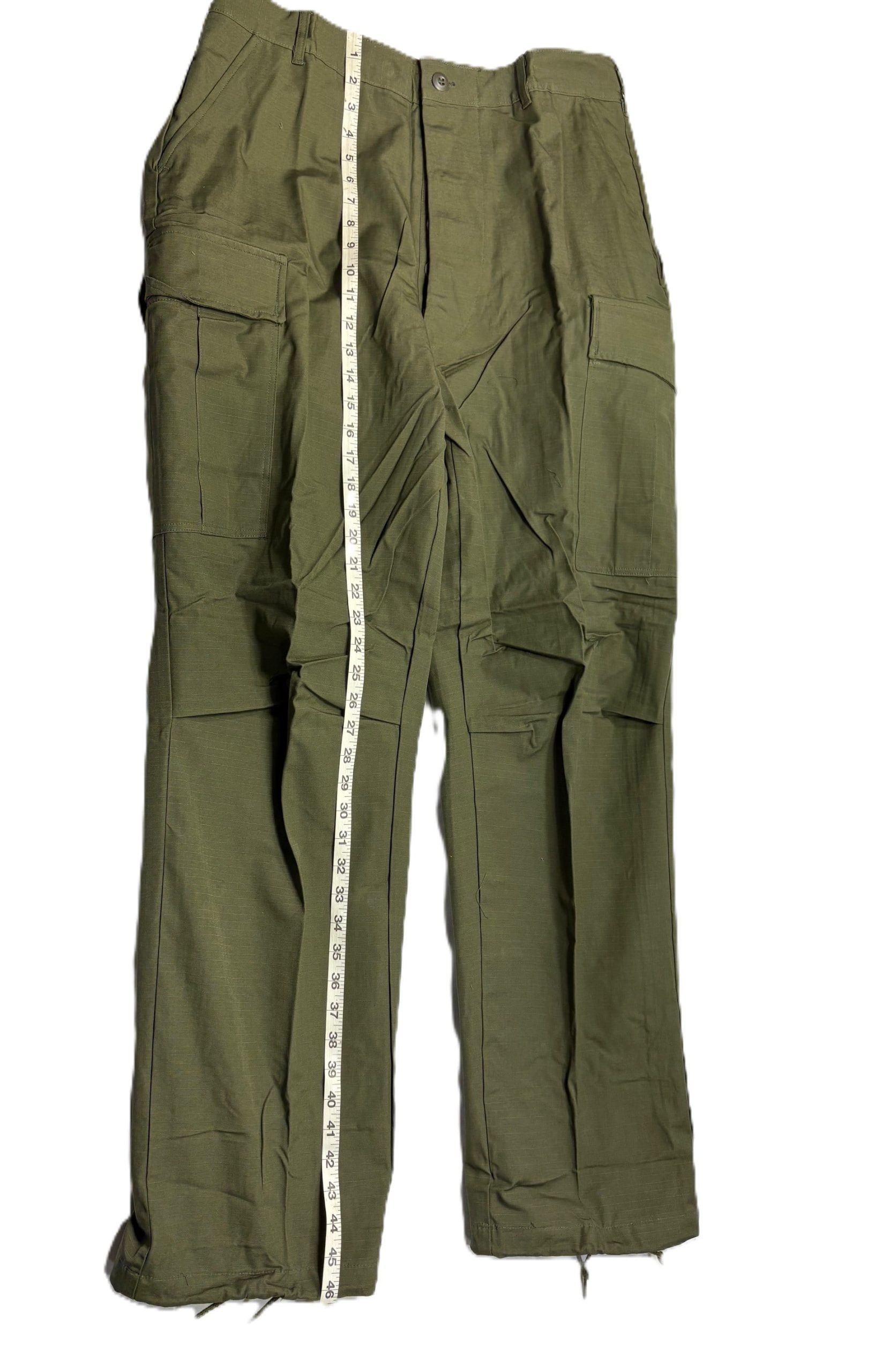 Genuine military issue jungle fatigue pants from Vietnam war. 2nd pattern ripstop material (button fly). Olive drab green 6-pocket trousers. NOS unissued. Limited stock quantity! only 2 available! Buy while you can!