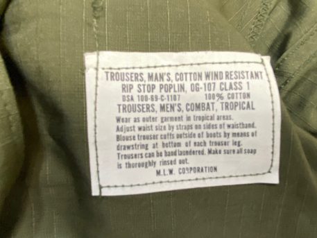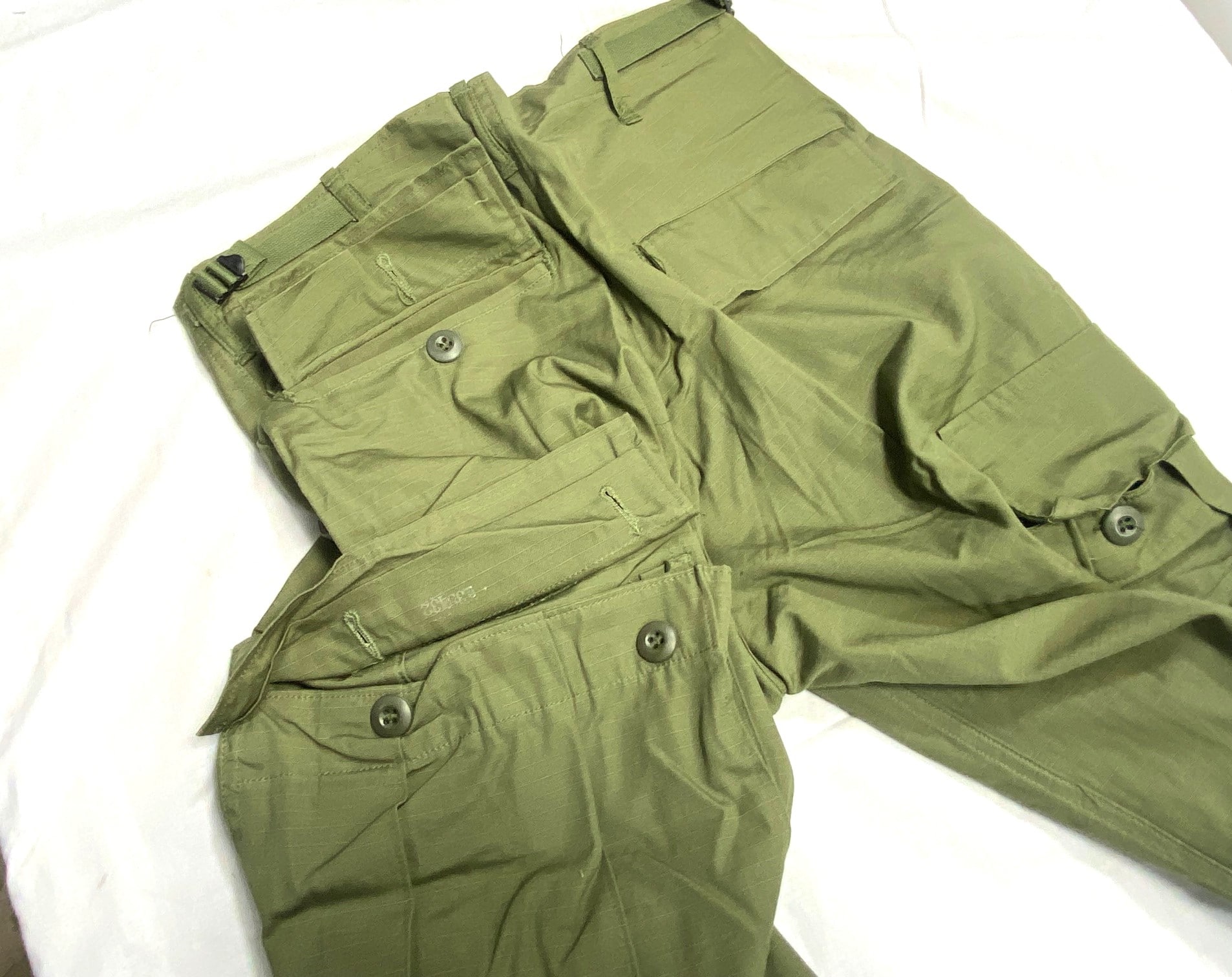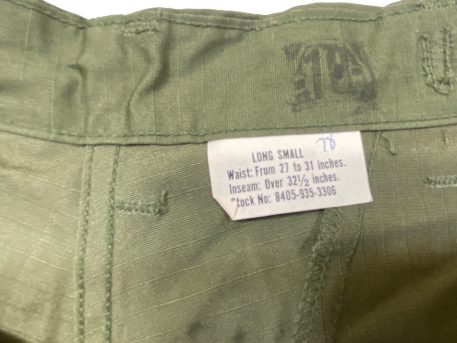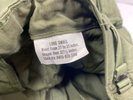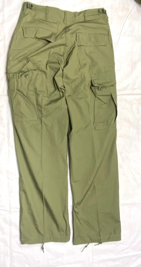 These are original 3rd pattern ripstop. Most are 60’s dated. They are new and un-issued. Left side thigh pocket on trousers contains a hidden inner pocket which identifies these as the genuine article.