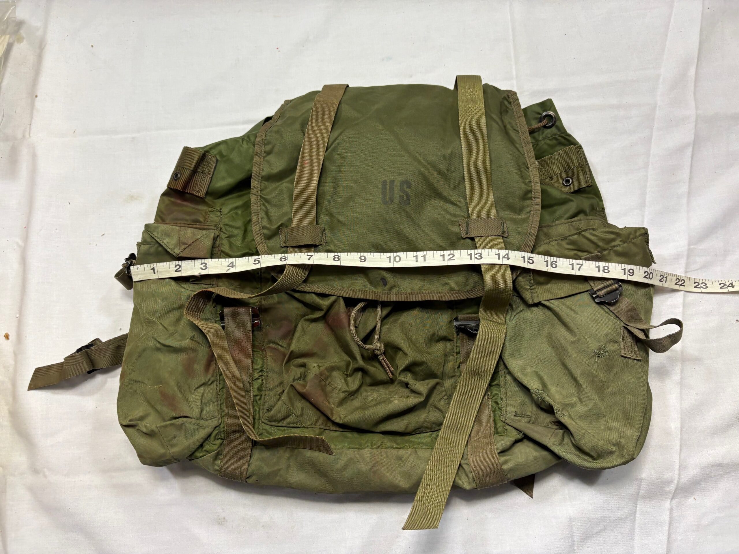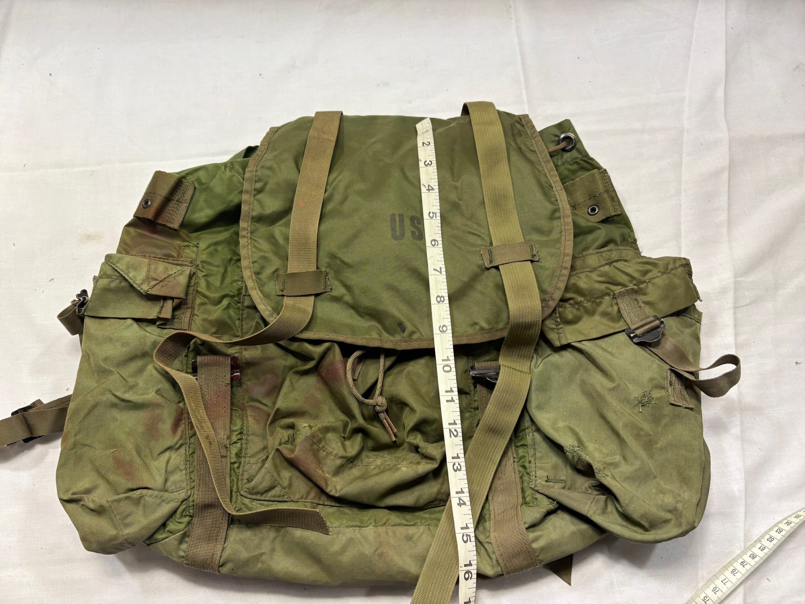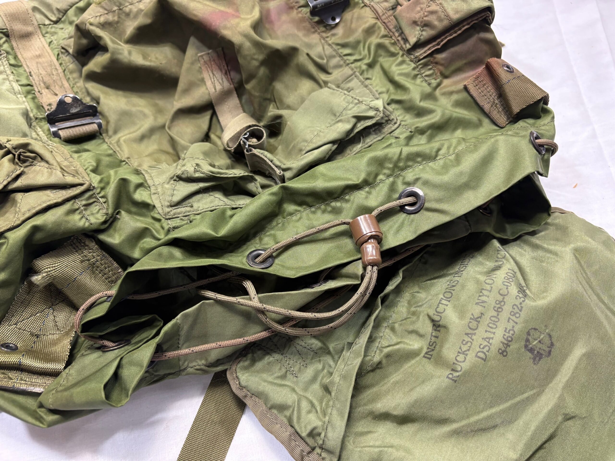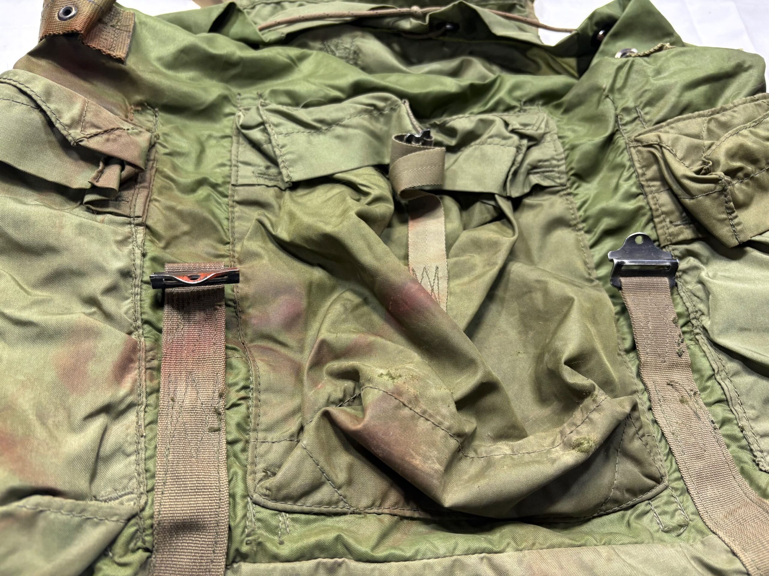 You can own a rucksack that was early issue in Vietnam. This nylon tropical pack with 3 outer pockets is used and best/better condition. Some minor holes, stains, repairs and red spray paint on pack. Mostly complete, but could be a minor part or two missing.*