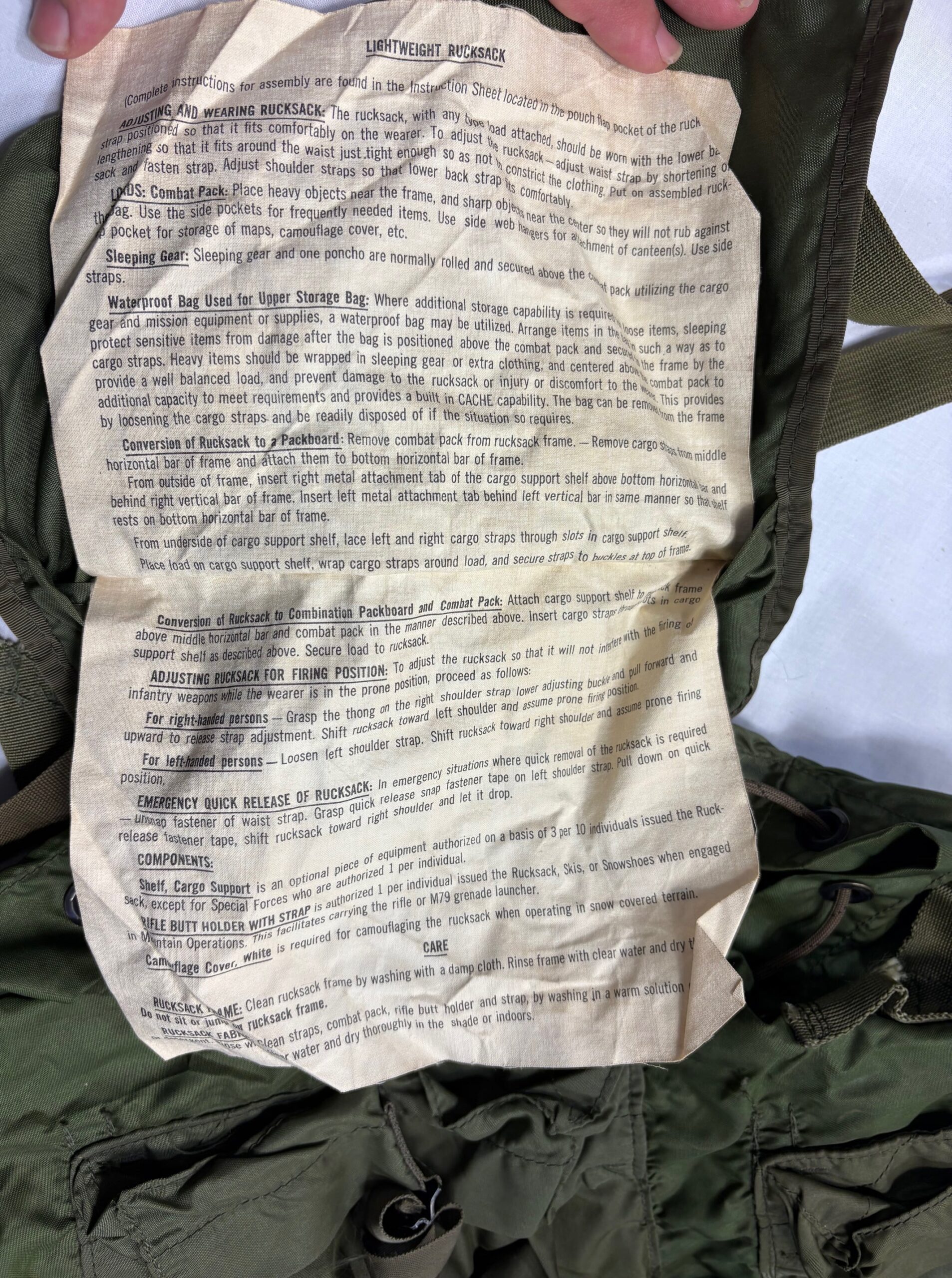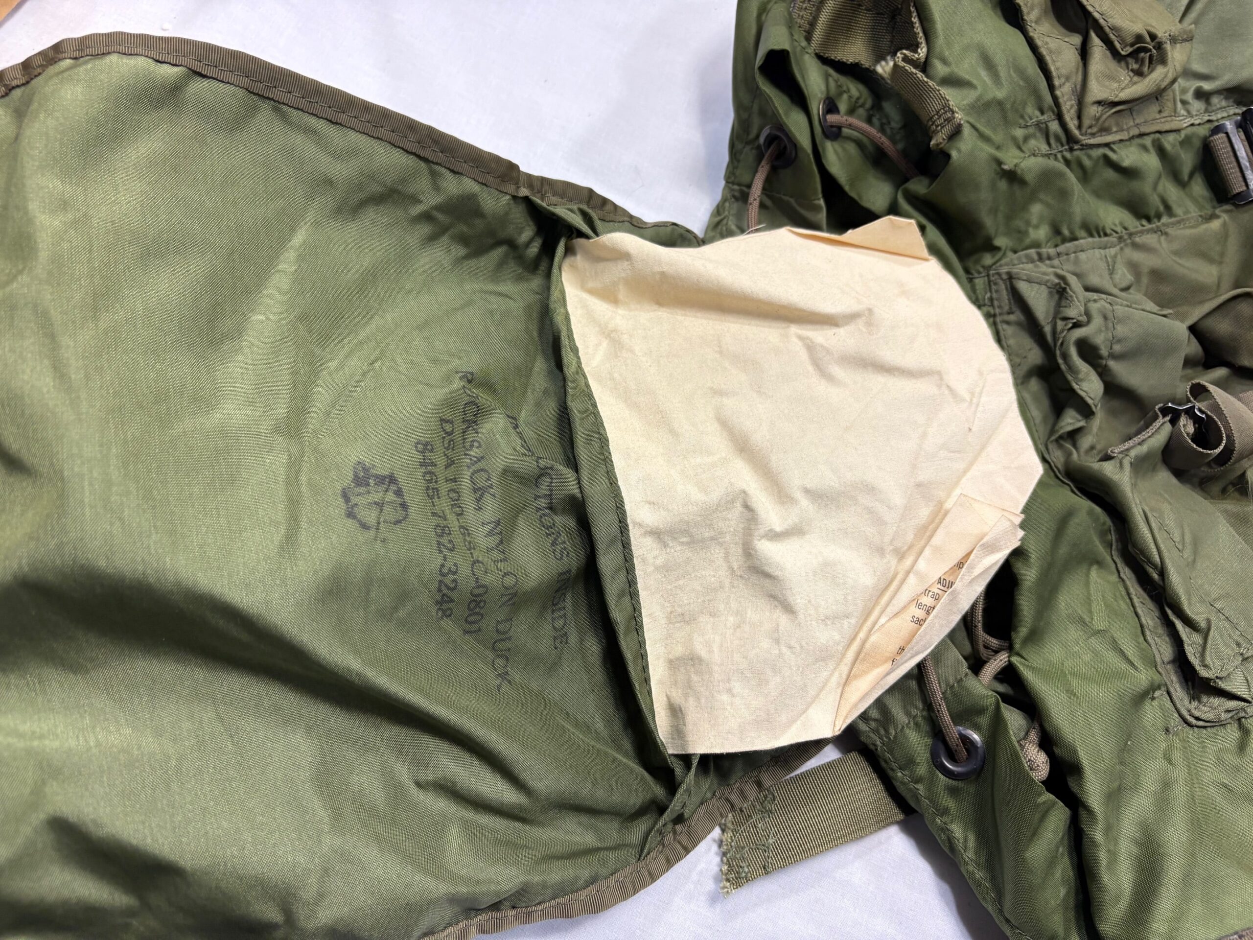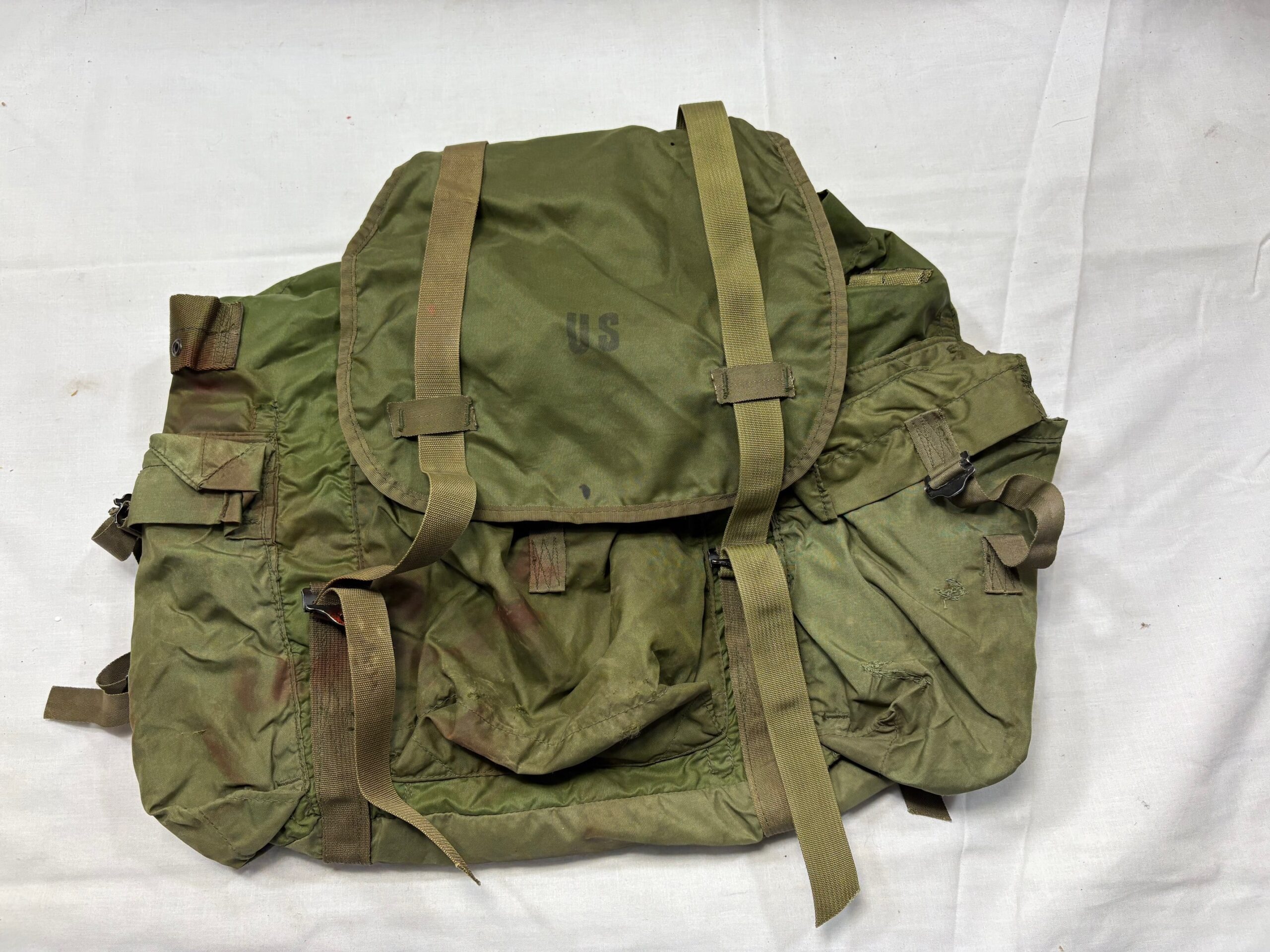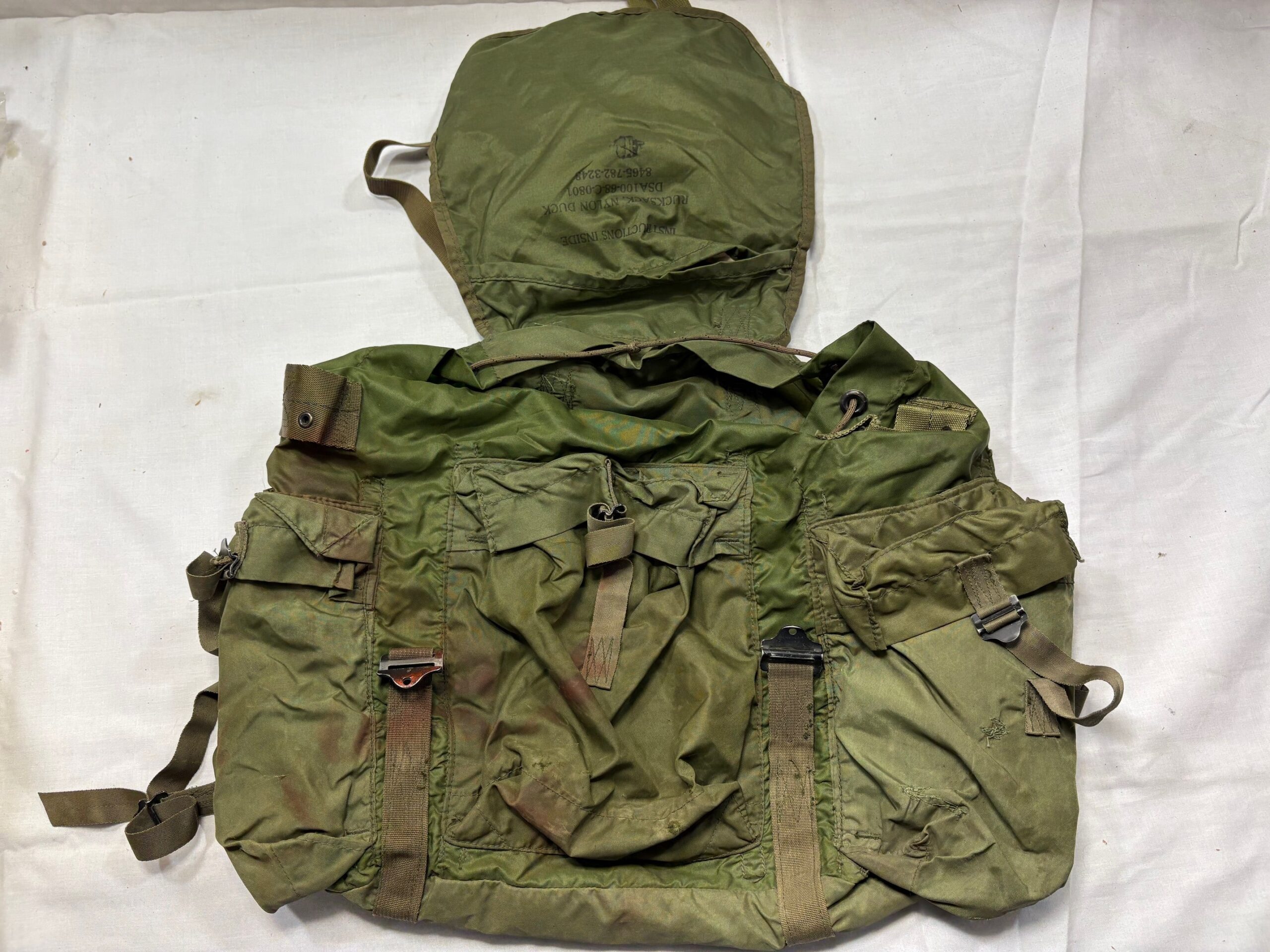 You can own a rucksack that was early issue in Vietnam. This nylon tropical pack with 3 outer pockets is used and best/better condition. Some minor holes, stains, repairs and red spray paint on pack. Mostly complete, but could be a minor part or two missing.*