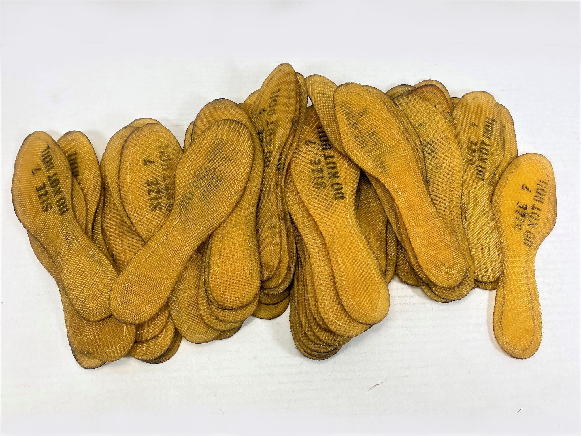 DO NOT BOIL! Vietnam Era mesh insoles for combat boots. 7 regular insoles. These are irregular factory seconds that were printed on left side only, not mirror imaged.