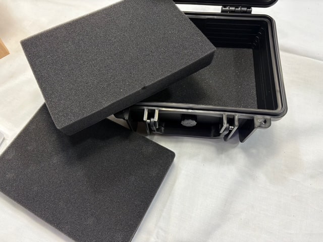 All new black waterproof storage container/box with air seal vent capability. Lots of new foam inside to protect valuables or take out the foam for more space!