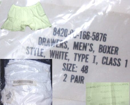Military issue underwear. WHITE. These boxers are the real deal. Wear with confidence. New old stock. 3 per pack. SIZE: 52.