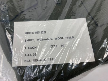 New old stock women’s wool field shirt. Size 10, DSA-100-76-1815.