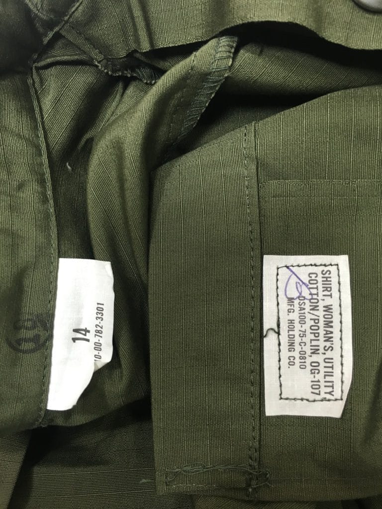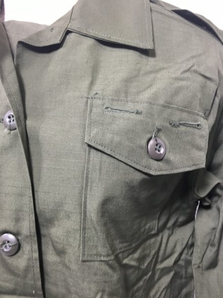 Women’s OG-107 cotton rip-stop jungle fatigue shirt. this all cotton jungle shirt is sized to fit ladies and come new old stock with the top pockets