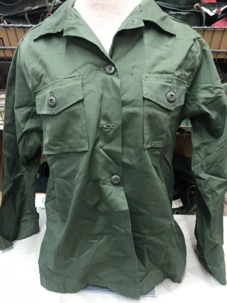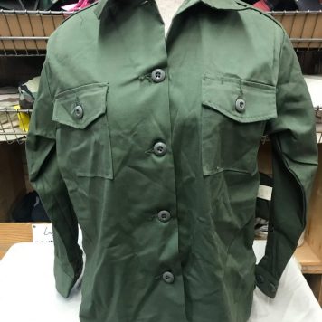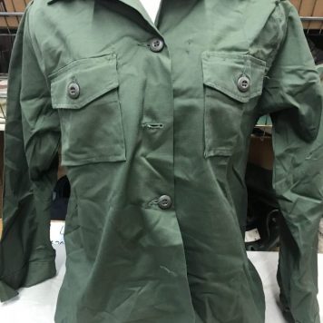 Womens od green fatigue shirts with top pockets. poly cotton material. In vietnam the women would wear this shirt. It is similar to the Men’s 2nd pattern fatigue shirt. This is 100% cotton ripstop.