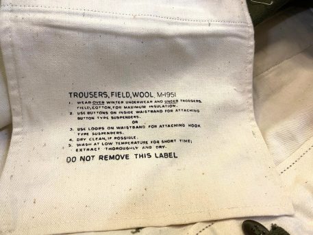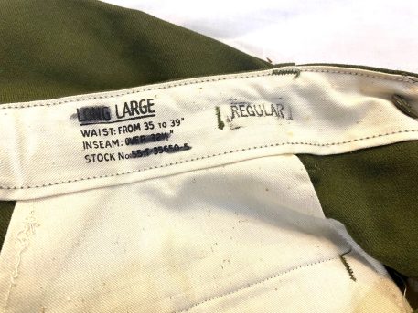 Warm original issue field trousers! US made, size LARGE REGULAR. These are NEW-OLD STOCK condition. Shades of wool, markings, and stamps from manufacturers will vary.