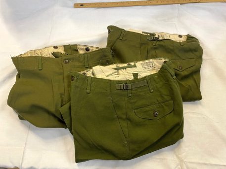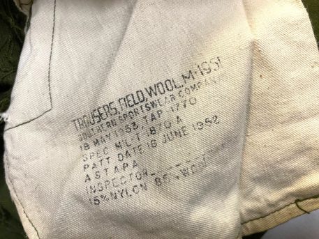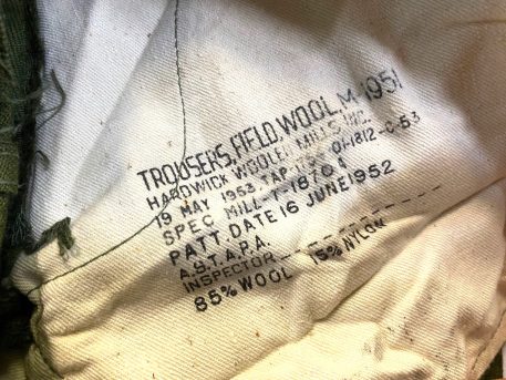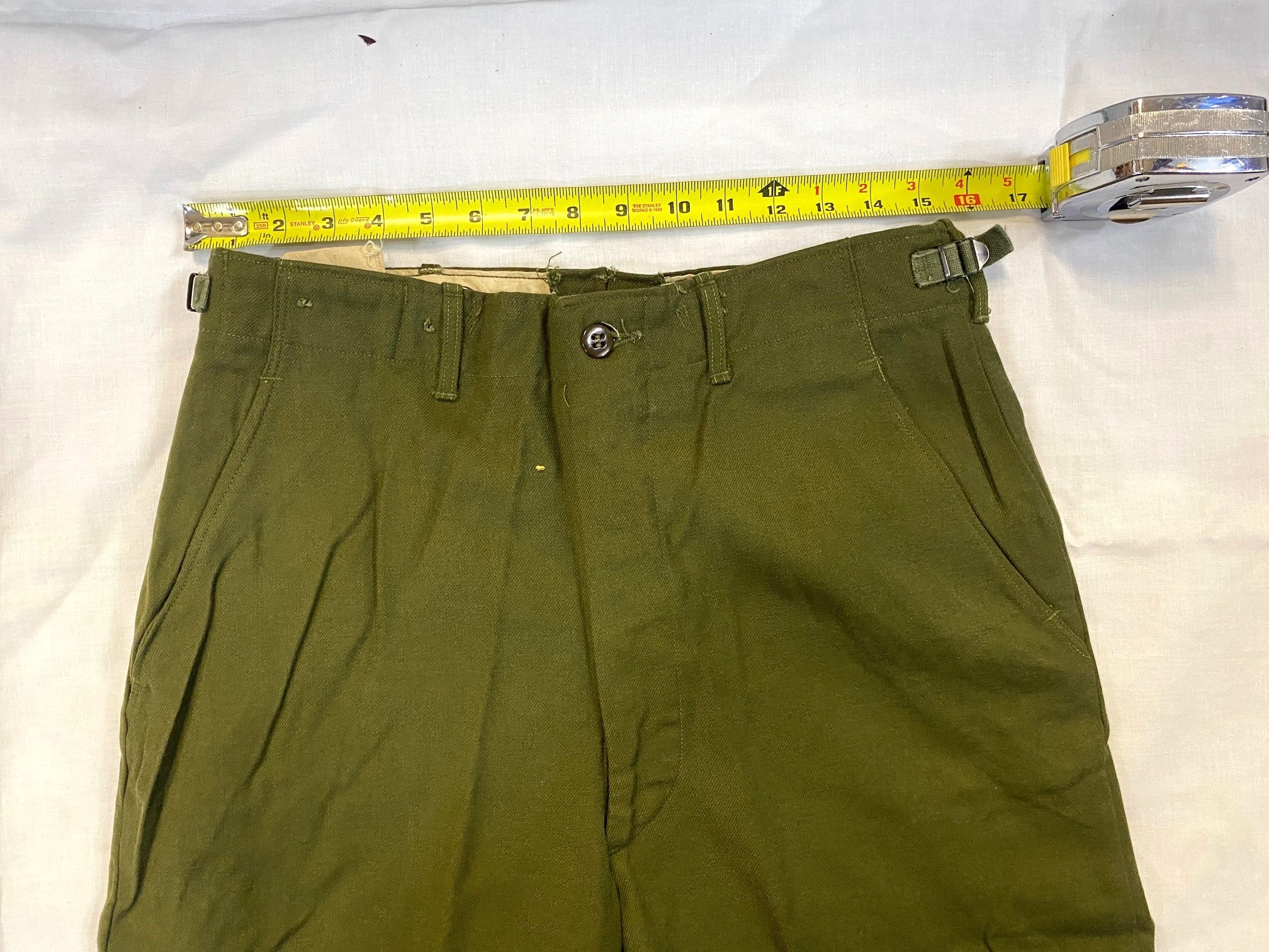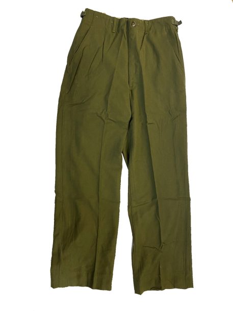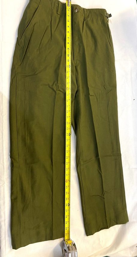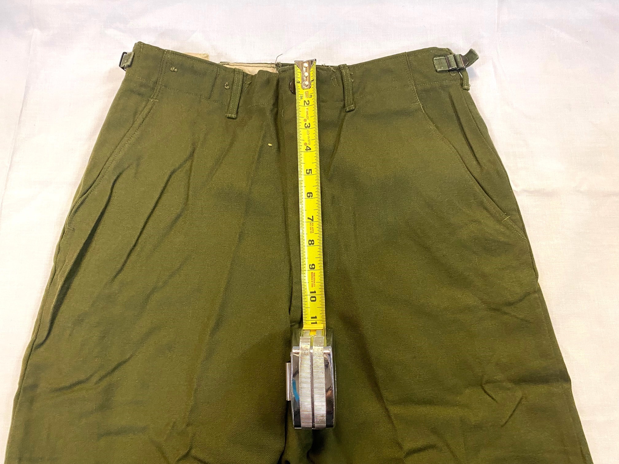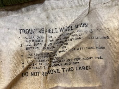Wooly-warm original issue field trousers. US made, size Small Regular. These are used-good condition. Shades of wool, markings, and stamps from manufacturers will vary.