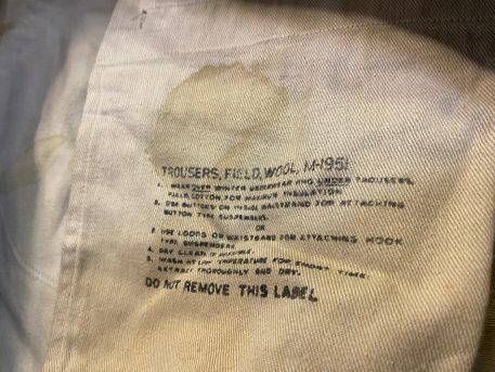 Extra warm original issue field trousers! US made, size Small Long. These are used-fair condition. *On the outside they look new, inside of the pants has browning*. Shades of wool, markings, and stamps from manufacturers will vary.