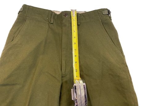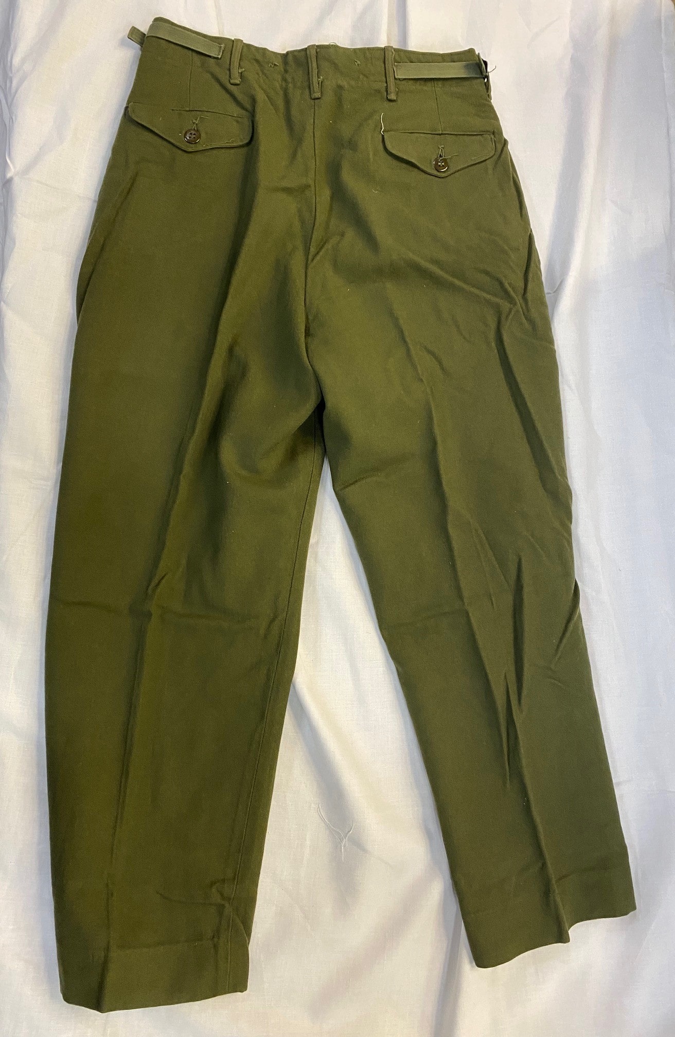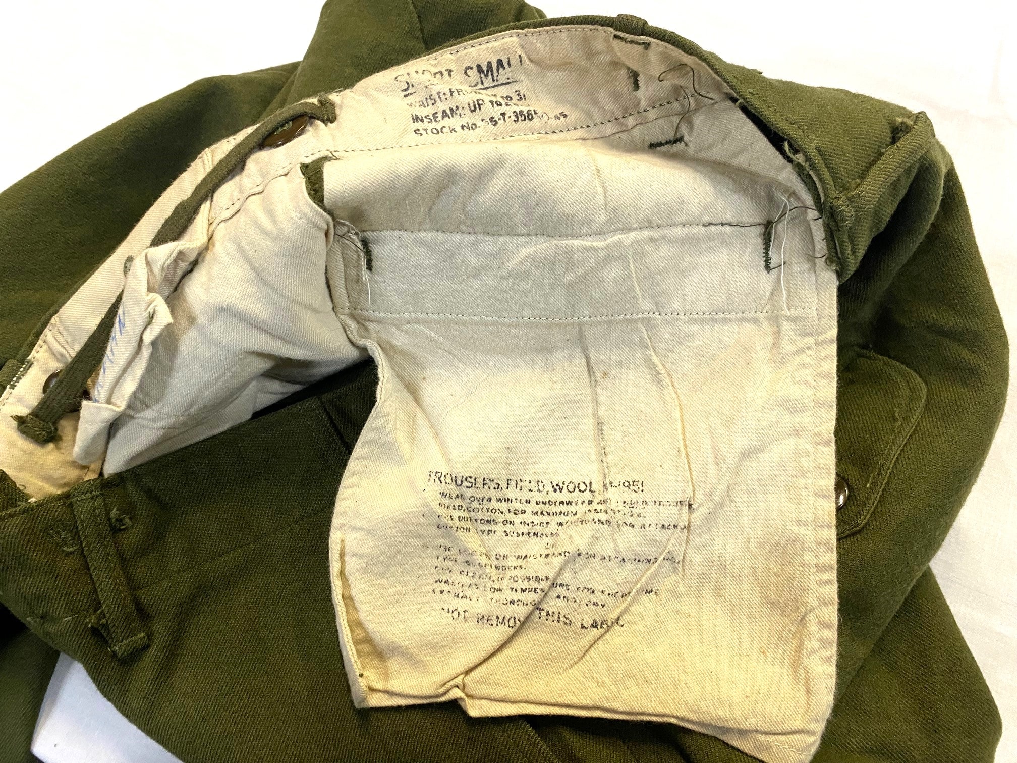 Wooly-warm original issue field trousers. US made, size Small Short. These are used-fair condition. Shades of wool, markings, and stamps from manufacturers will vary.