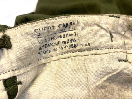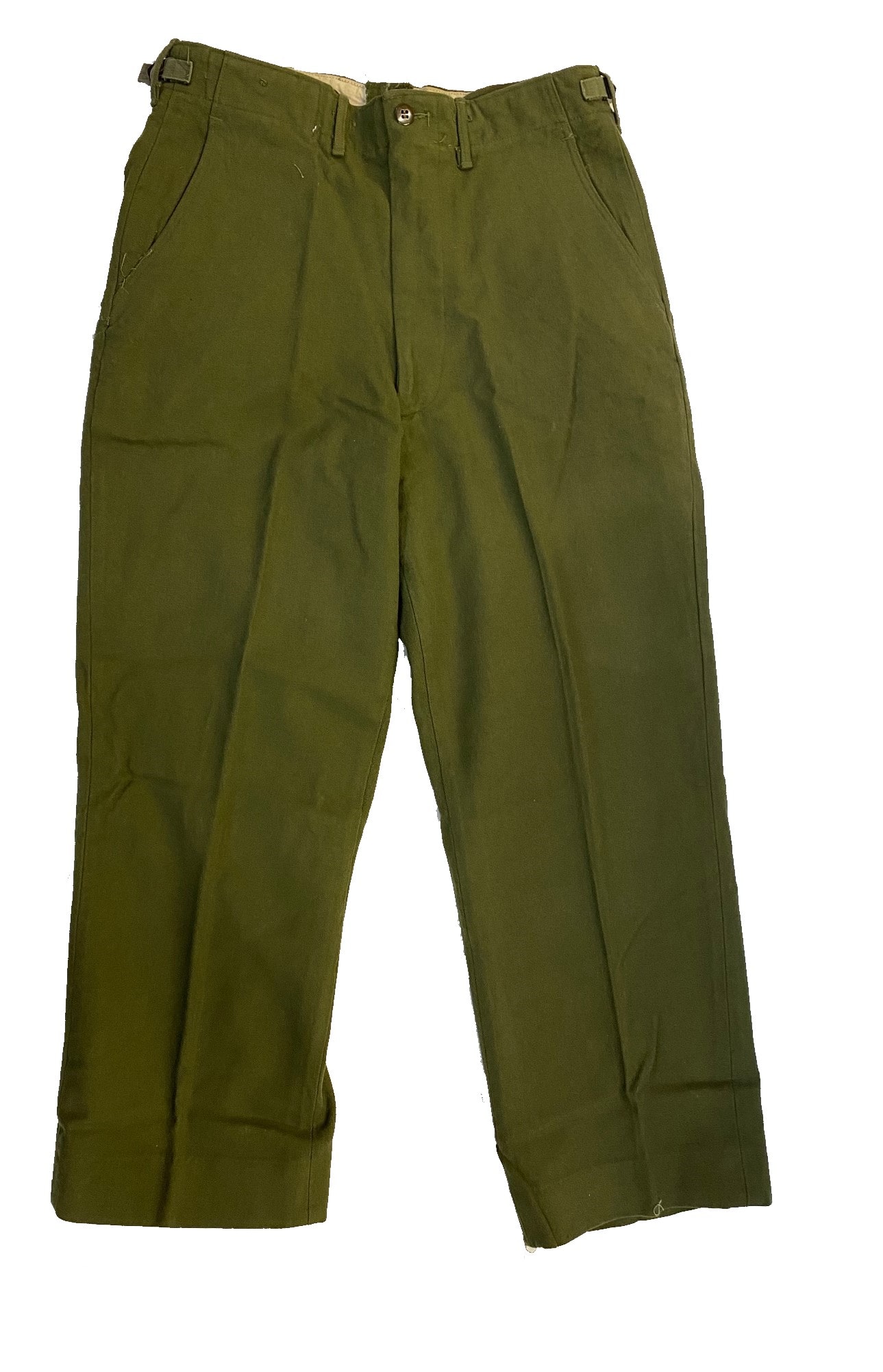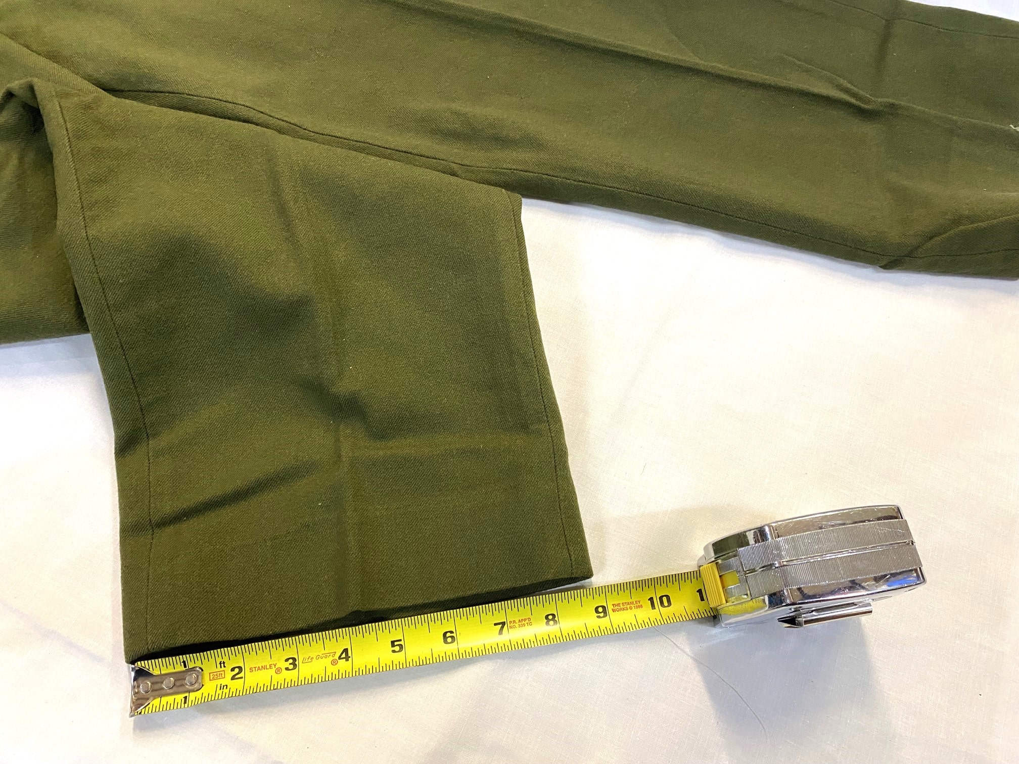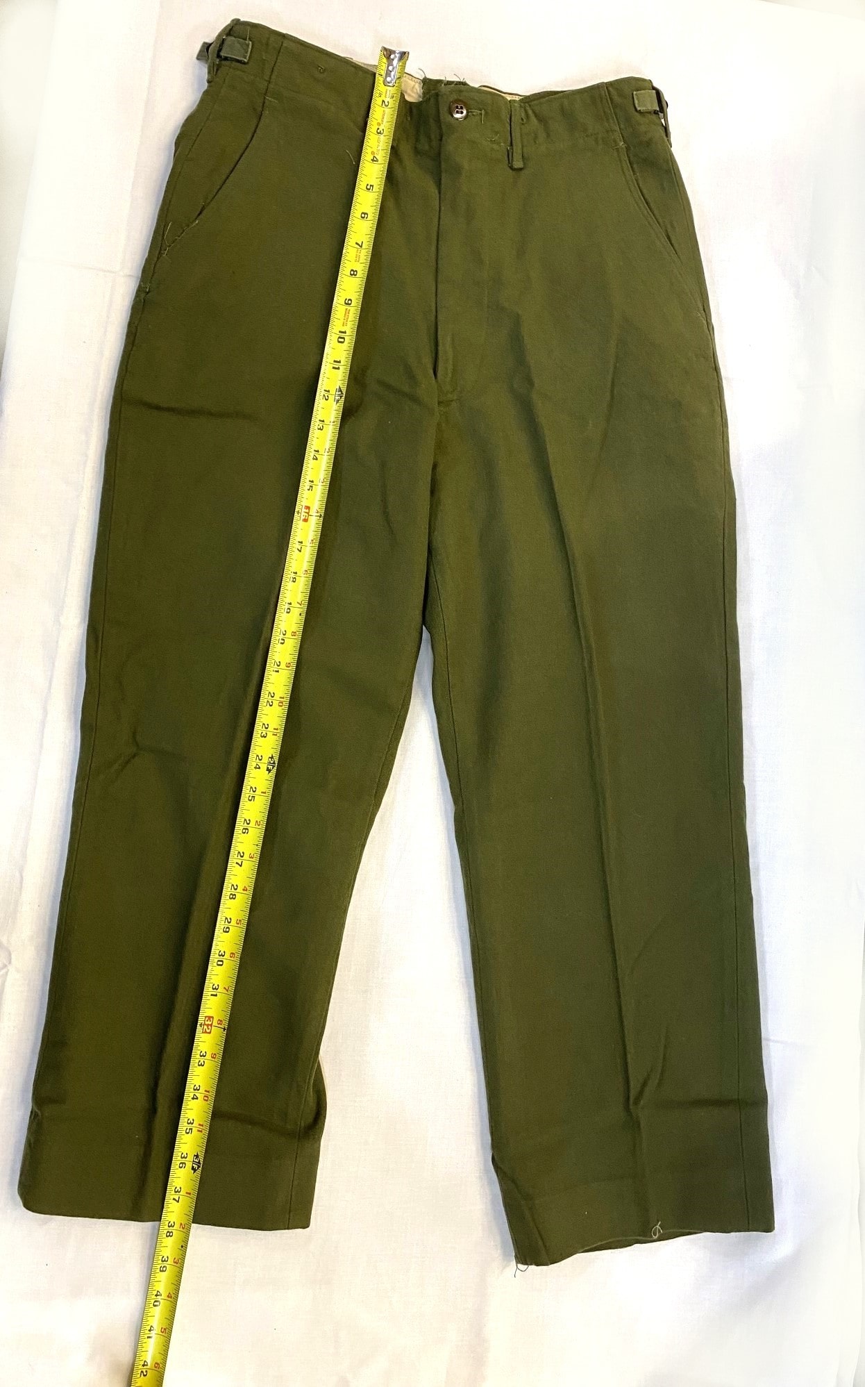Wooly-warm original issue field trousers. US made, size Small Short. These are used-fair condition. Shades of wool, markings, and stamps from manufacturers will vary.