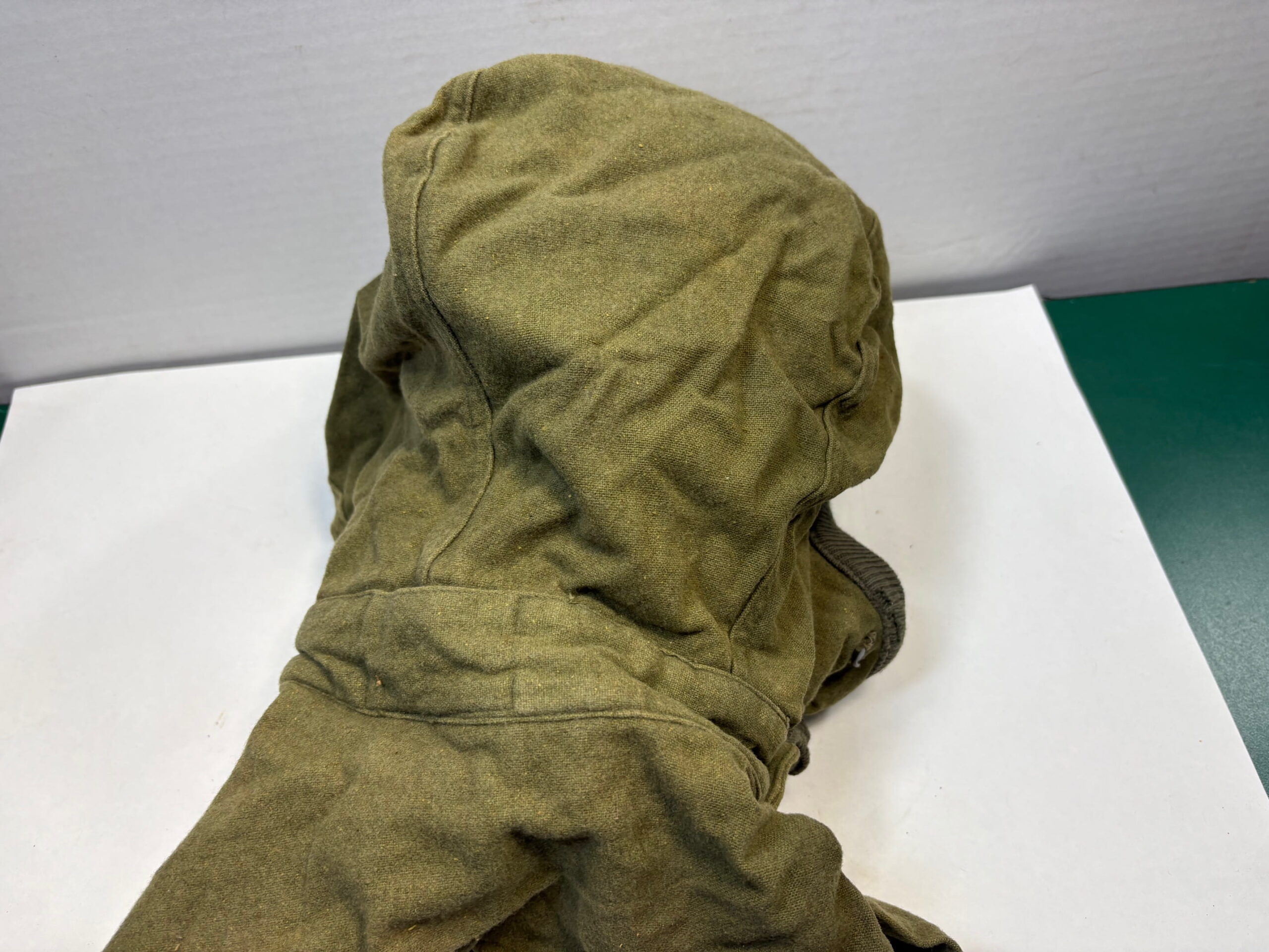 Authentic WW2 chemical gas hood. These are all used condition with small pins holes, fraying around trim, and stains from use and age. *No size choice, all are small. May have size tag may not. Sold as is.