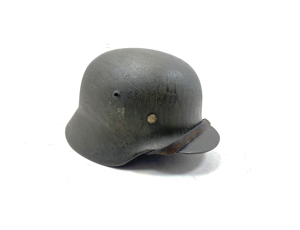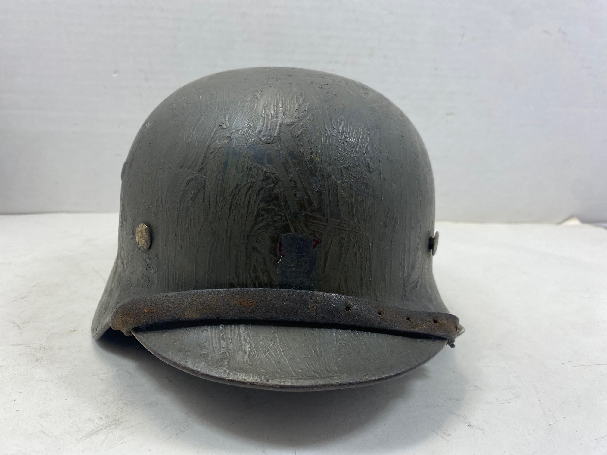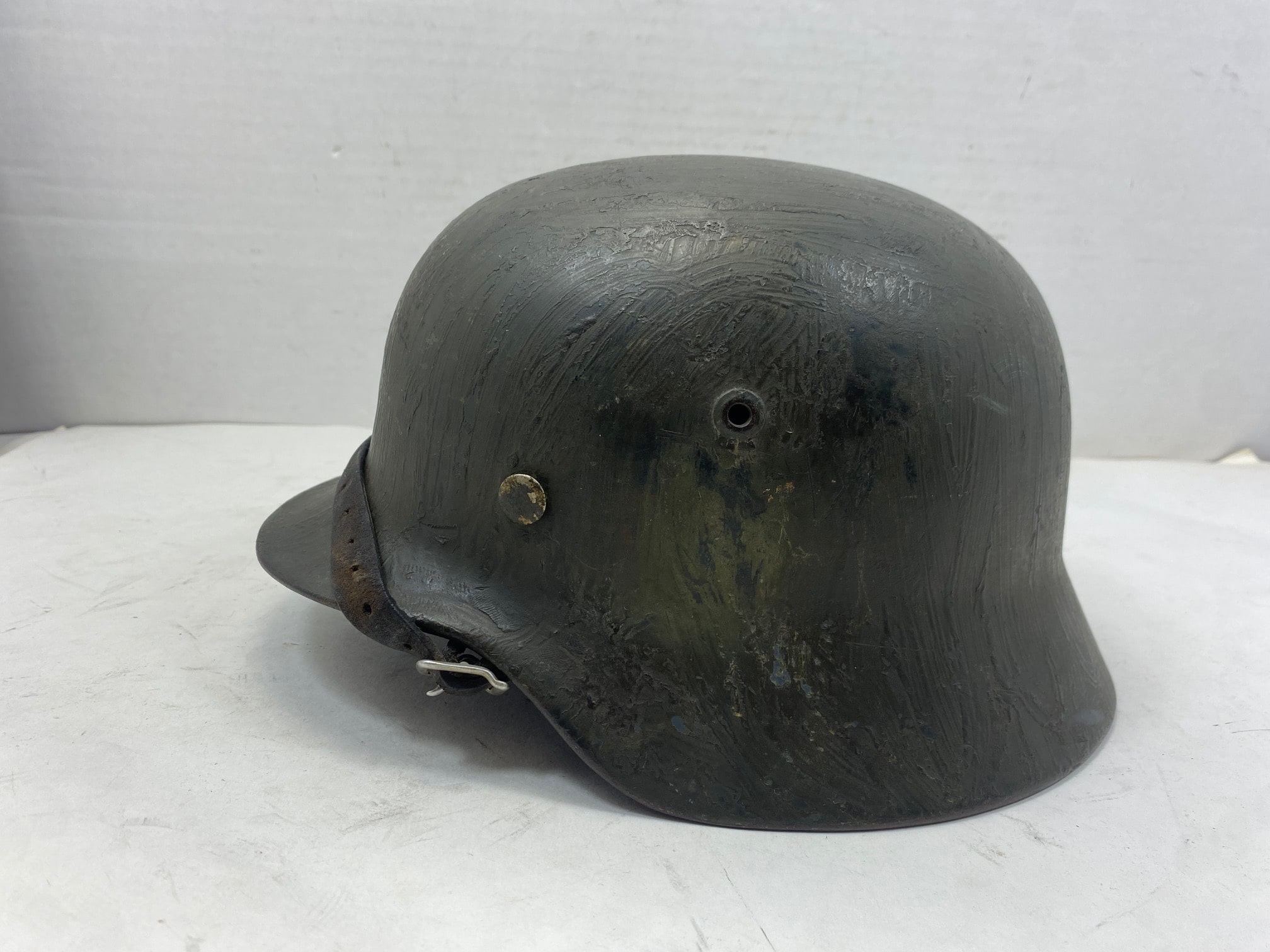 Authentic 1 only World War 2 German Army Helmet, used by the Axis-Nazis during the war. All original complete, this helmet has been painted over with a black-green paint.