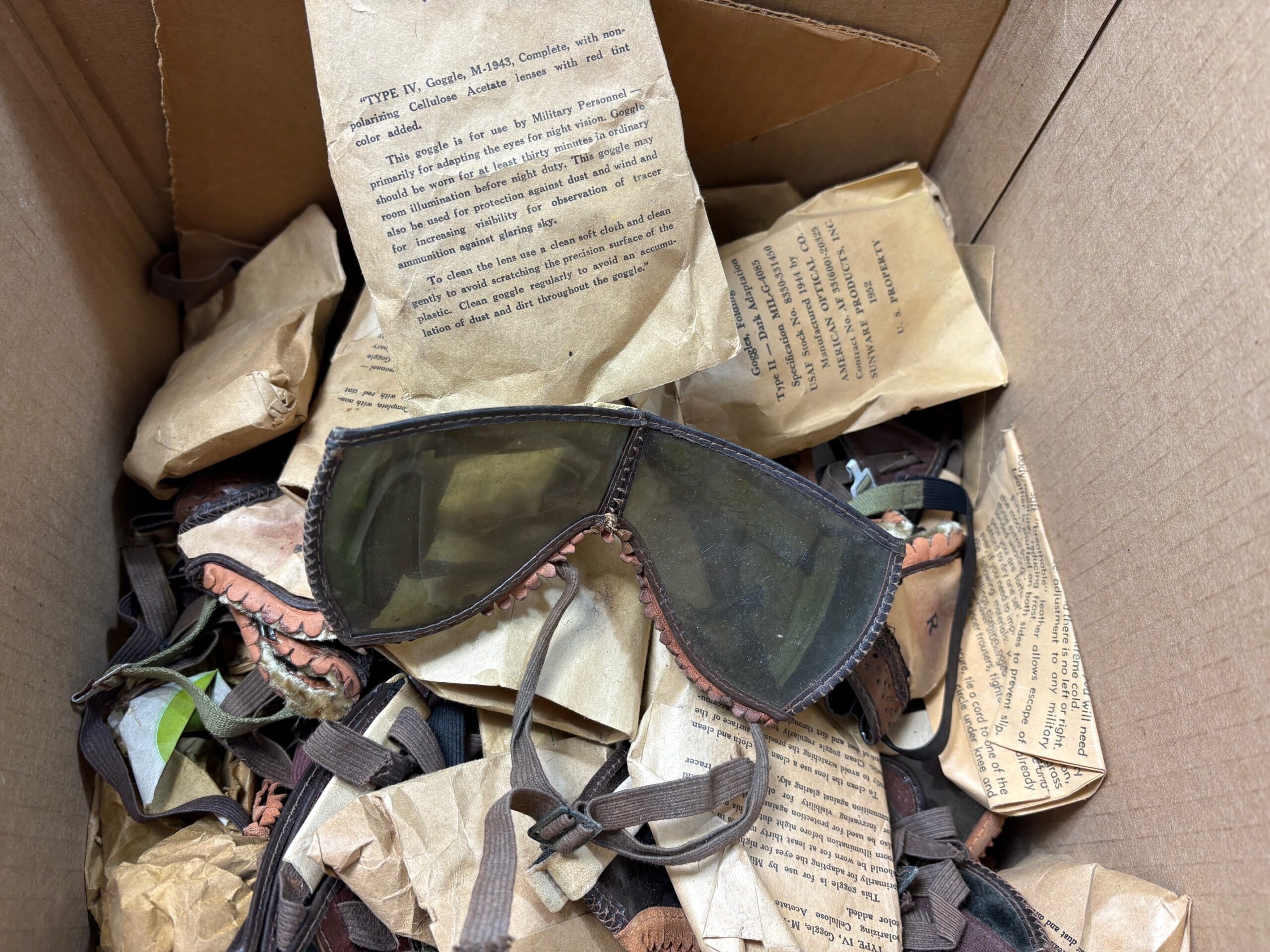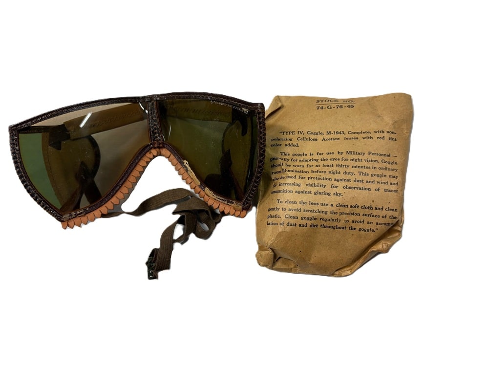 Non-Polarizing cellulose acetate M-1943 Polaroid Ski Goggles, WW2 era. Unfortunately, these are very rough and starting to deteriorate. Very brittle! For collection purposes only. *not for use*