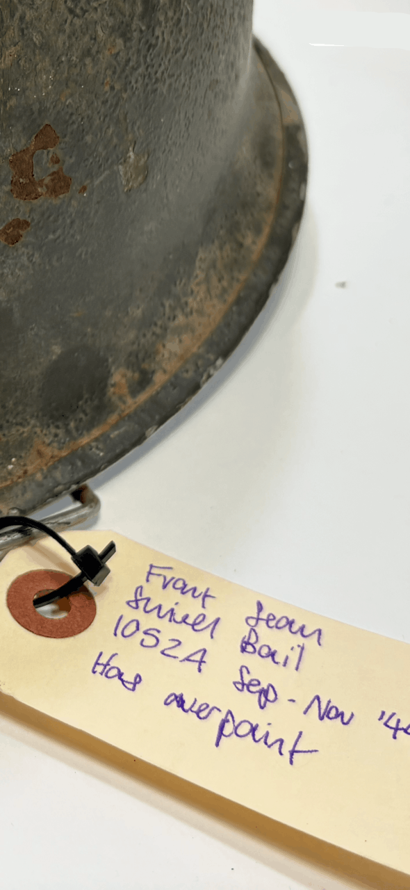 Tags: front seam, steel pot, swivel bail, ww2, ww2 helmet, ww2 steel pot helmet