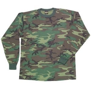 Kids size t-shirt long-sleeve. Poly / cotton. Military woodland camo t shirt New.